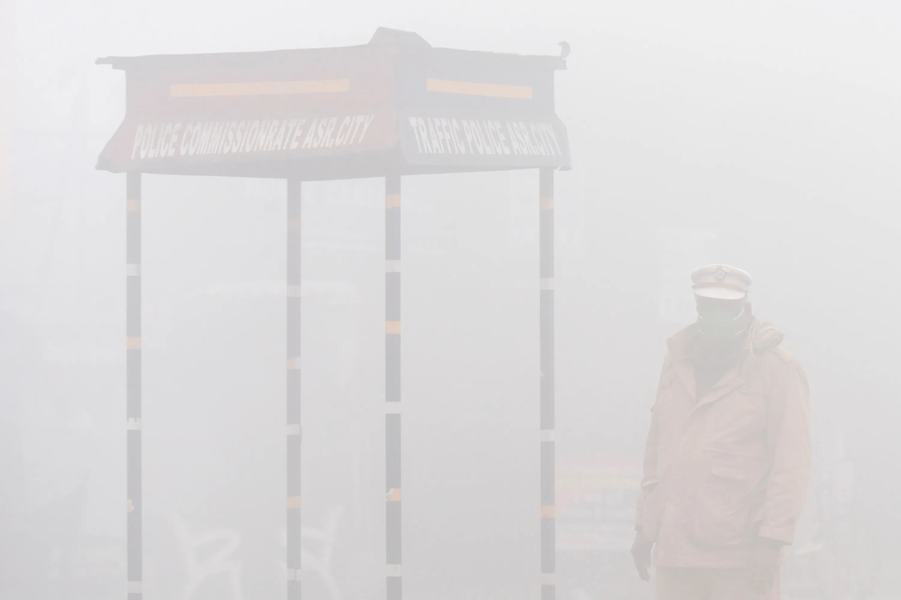 A policeman stands guard on a street amid dense fog on a cold winter morning in Amritsar on December 24, 2020. (Photo by Narinder Nanu/AFP Photo)