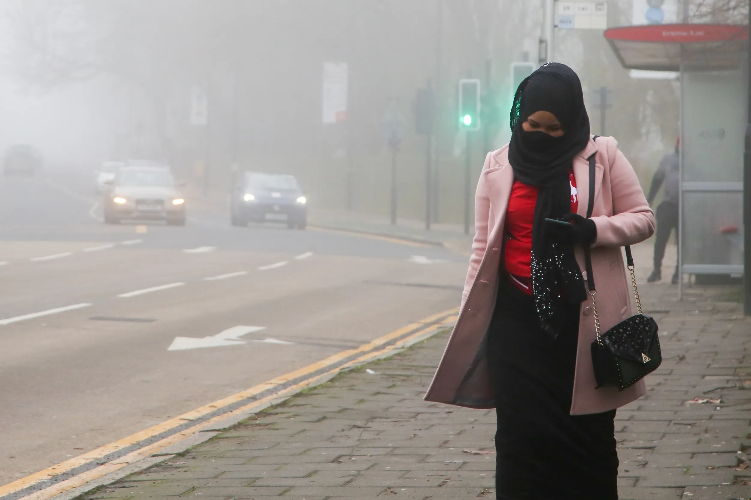 A woman wearing a face mask walks on the street on a foggy morning in London, as many parts of the UK are now in Tier 4 COVID-19 restrictions on December 28, 2020. The UK has recorded its highest daily rise in coronavirus cases since the pandemic began with 41,385 positive tests. Prime Minister Boris Johnson hasn't ruled out a national lockdown in the New Year. (Photo by Dinendra Haria/SOPA Images/Sipa USA)