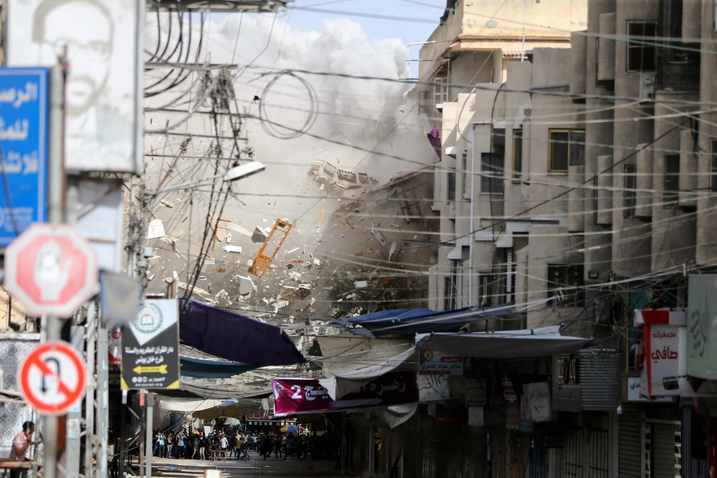 Debris fly as smoke rises following an Israeli air strike, amid Israeli-Palestinian fighting, in Khan Younis in the southern Gaza Strip, May 20, 2021. (Photo by Ibraheem Abu Mustafa/Reuters)
