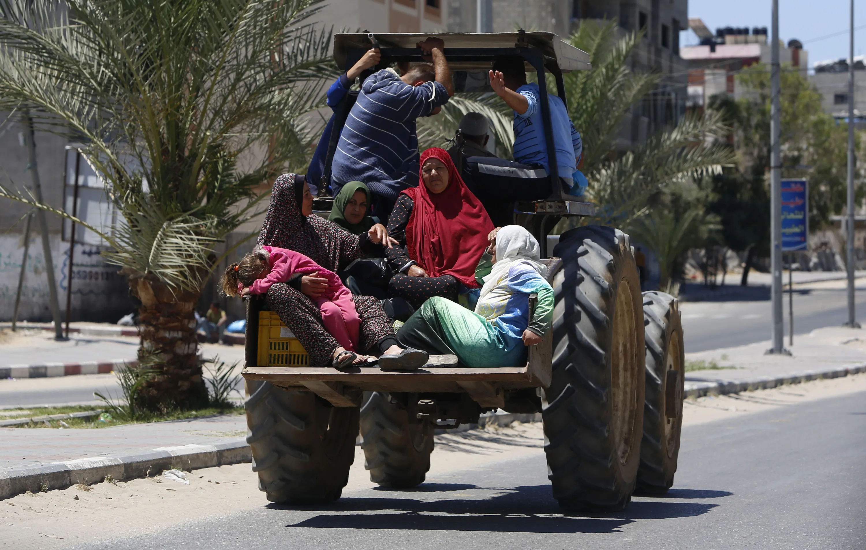 Palestinian family sit in a truck as they fleeing their house in Gaza City, Tuesday, May 18, 2021. Since the fighting began last week, the Israeli military has launched hundreds of airstrikes it says are targeting Hamas' militant infrastructure, while Palestinian militants have fired thousands of rockets into Israel. (Photo by Hatem Moussa/AP Photo)