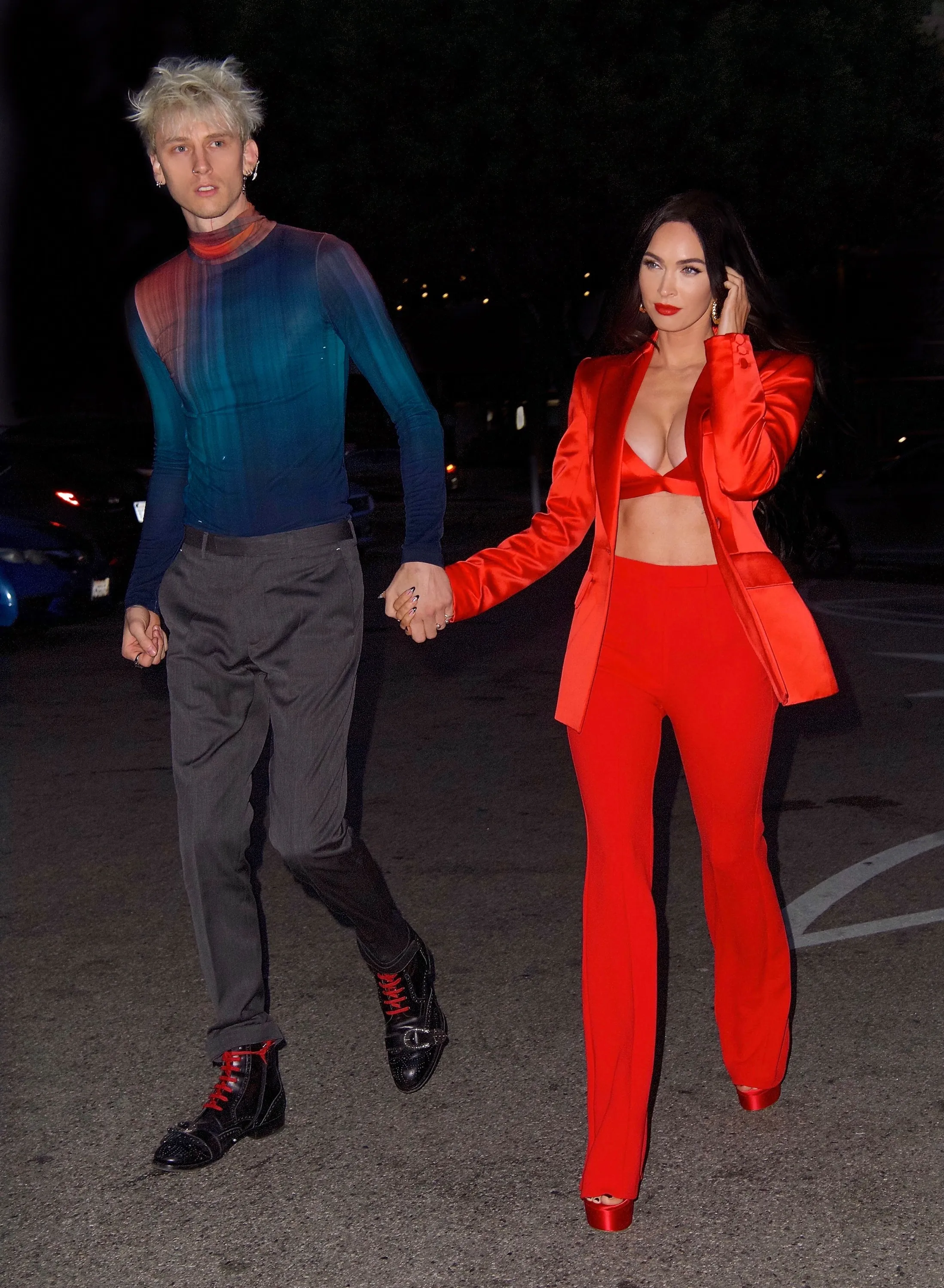 American actress and model Megan Fox nearly busts out of red silk bra as she celebrates 35th birthday with boyfriend Machine Gun Kelly in Santa Monica, California on May 15, 2021. (Photo by Splash News and Pictures)