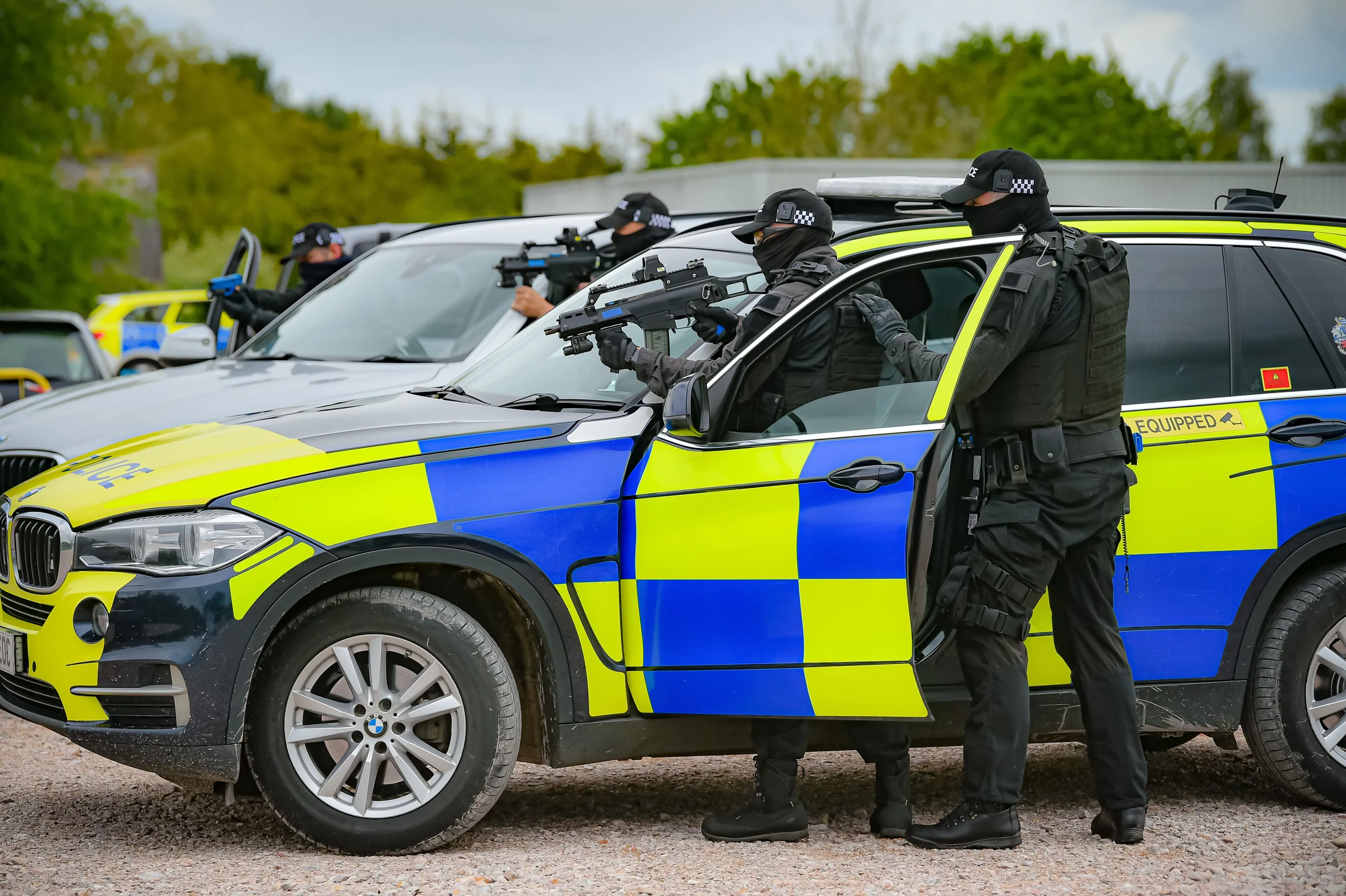Members of Devon and Cornwall Police during training scenario where they are practicing an armed vehicle stop at the force headquarters in Exeter, as they prepare for the forthcoming G7 Summit in Cornwall on Tuesday, May 25, 2021. (Photo by Ben Birchall/PA Images via Getty Images)