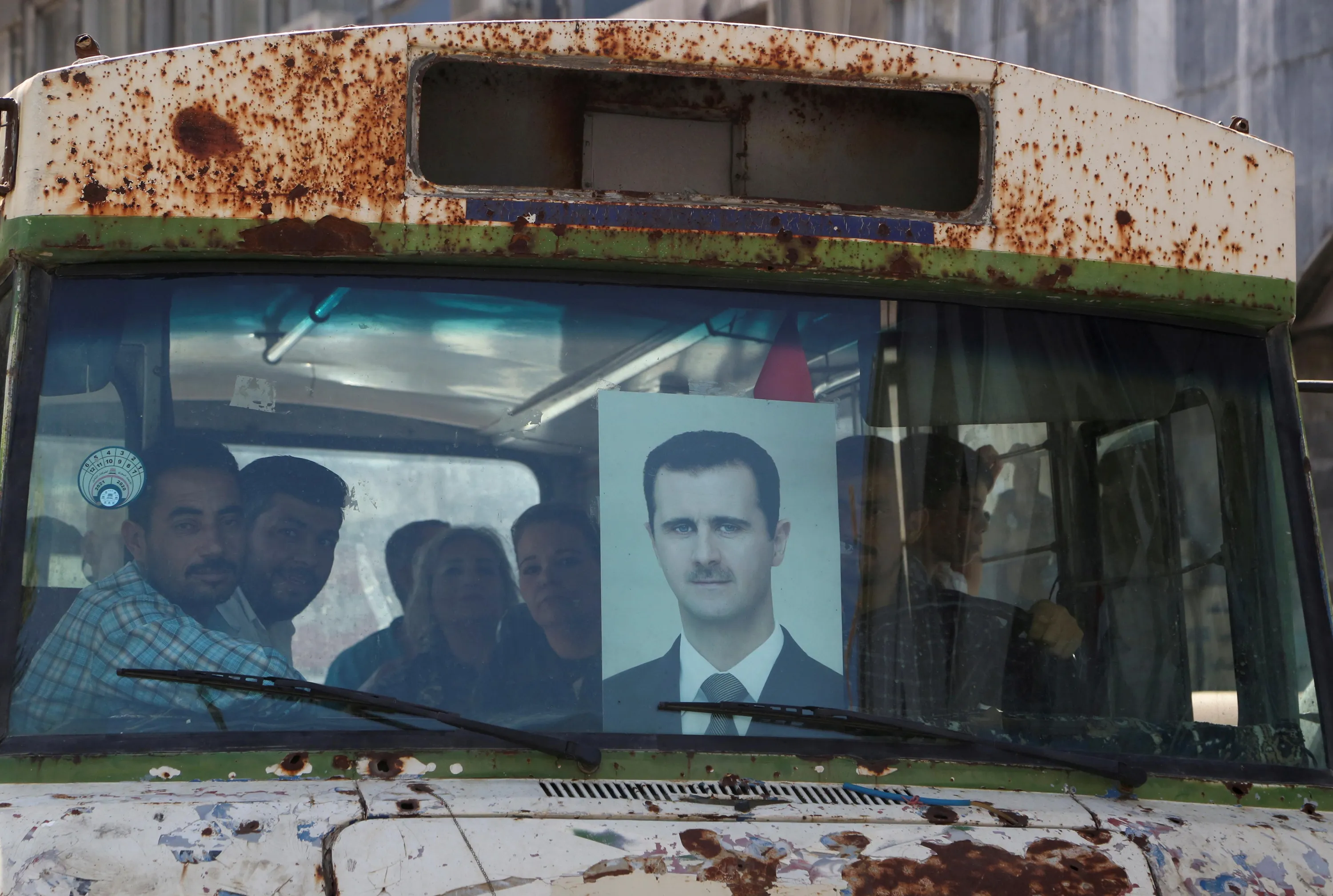 People ride on a bus as they head to a polling station to cast their vote, during the presidential elections, in Damascus, Syria on May 26, 2021. The government says the election shows Syria is functioning normally despite the decade-old conflict, which has killed hundreds of thousands of people and driven 11 million people - about half the population - from their homes. (Photo by Yamam al Shaar/Reuters)