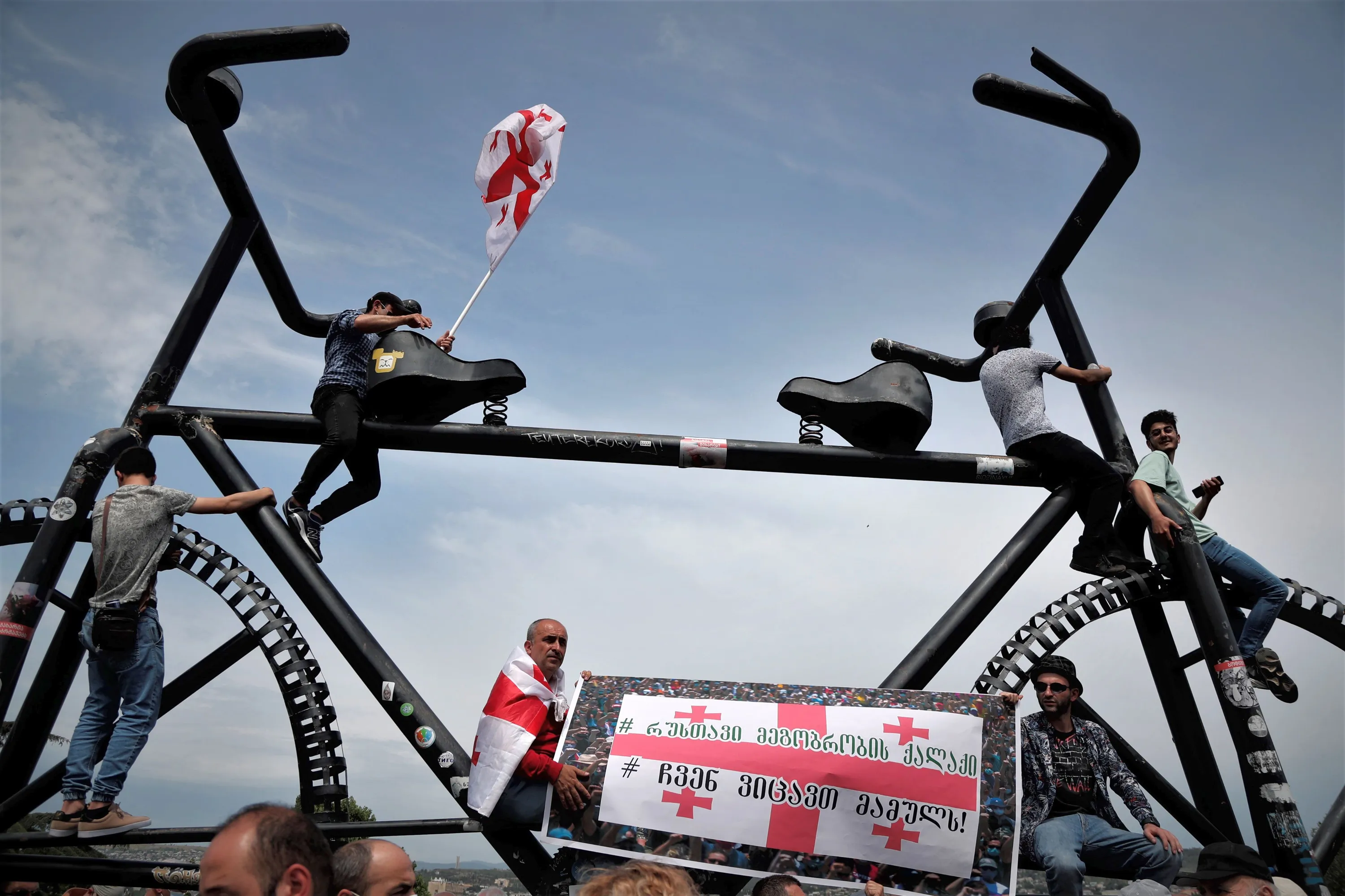 Georgians take part in a protest rally in Tbilisi, Georgia, 23 May 2021. People protest against the construction the Namakhvani Hydropower Plant dam on the river of Rioni. (Photo by Zurab Kurtsikidze/EPA/EFE)