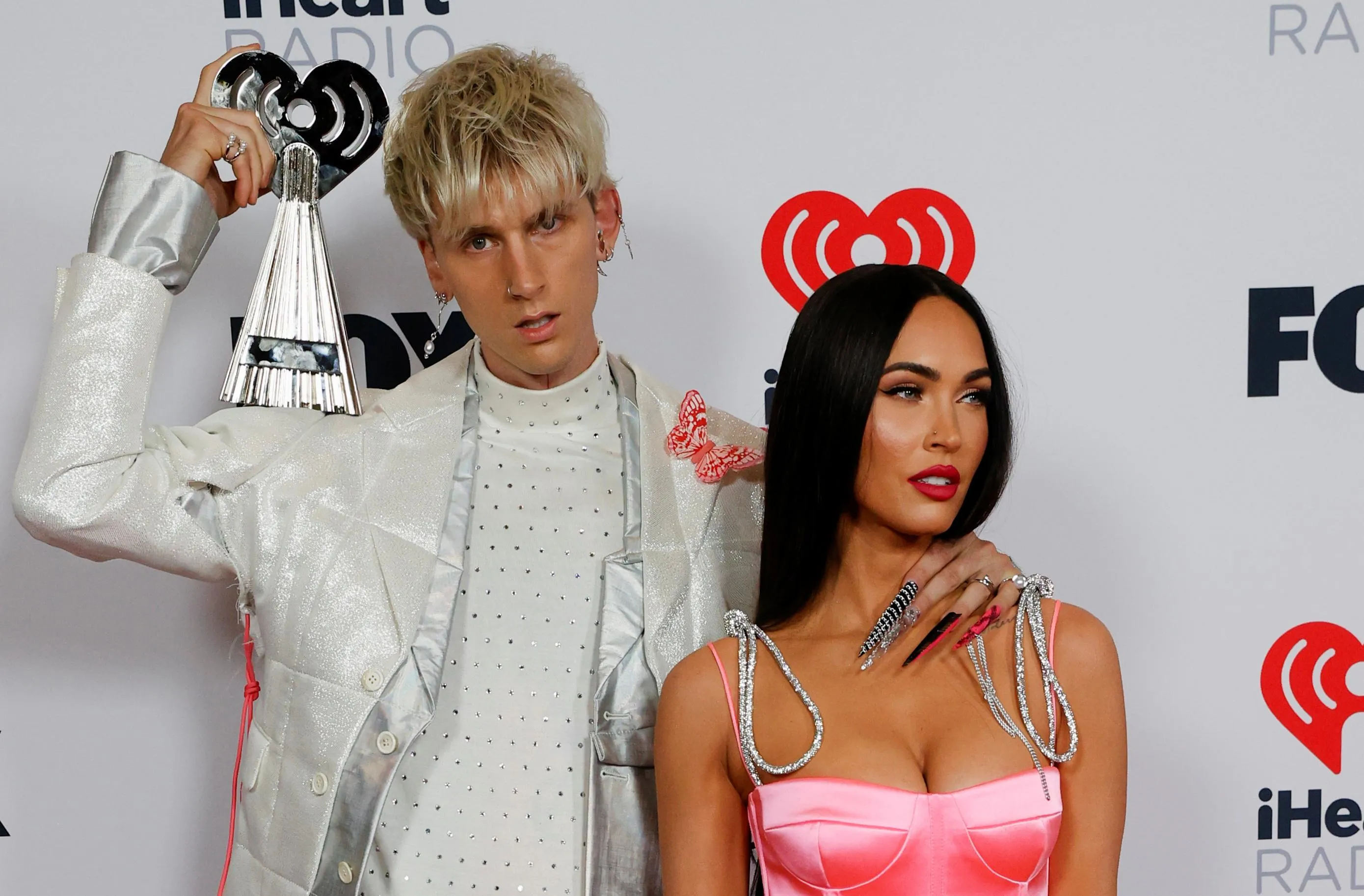 American rapper Machine Gun Kelly, accompanied by American actress and model Megan Fox, poses with his award for Alternative Rock Album of the Year at the 2021 iHeartRadio Music Awards at Dolby Theatre in Los Angeles, California, U.S., May 27, 2021. (Photo by Mario Anzuoni/Reuters)