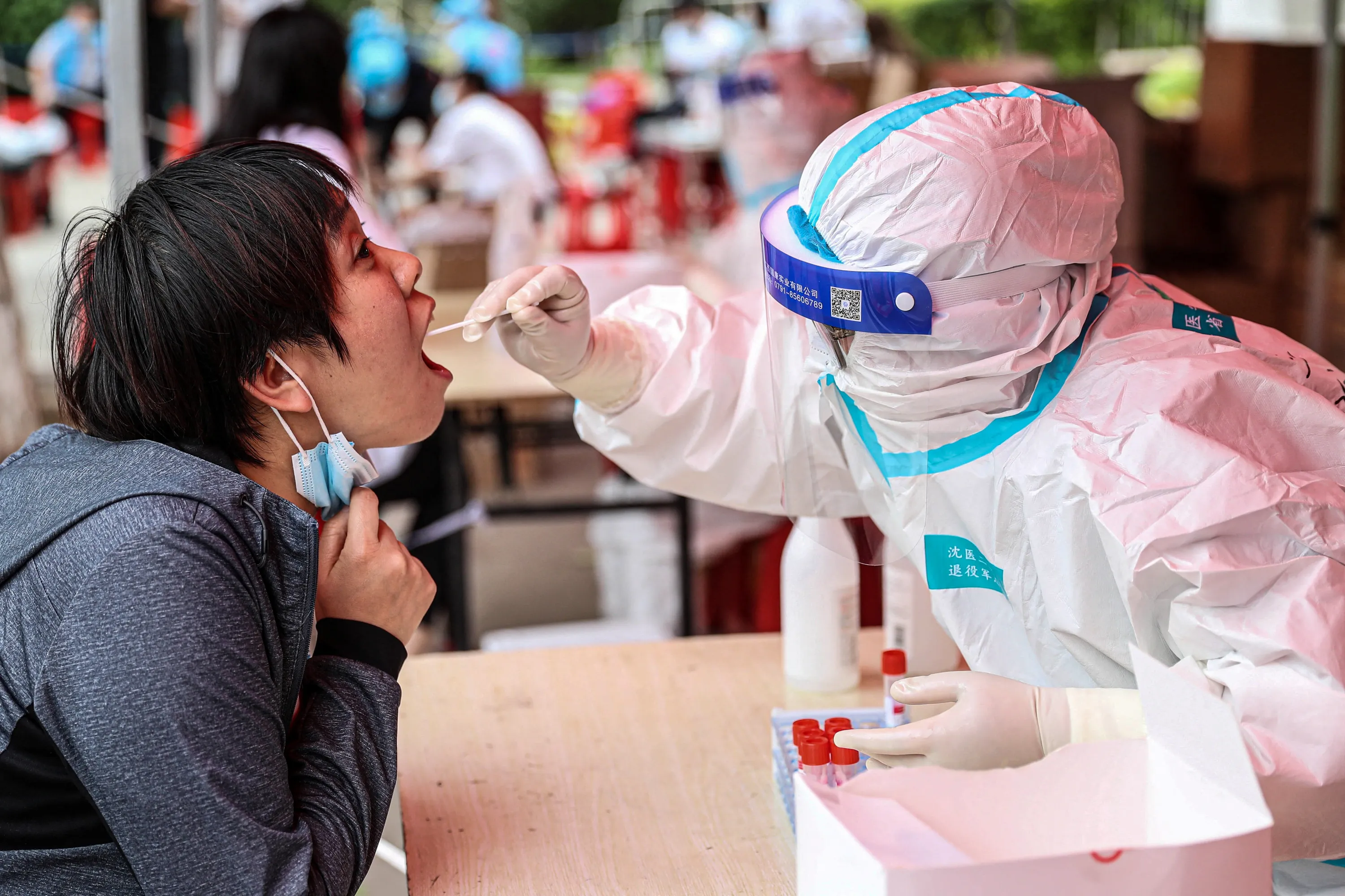 A health worker takes a swab sample from a resident to test for the Covid-19 coronavirus in Shenyang, in northeastern China's Liaoning province on May 20, 2021. (Photo by AFP Photo/China Stringer Network)