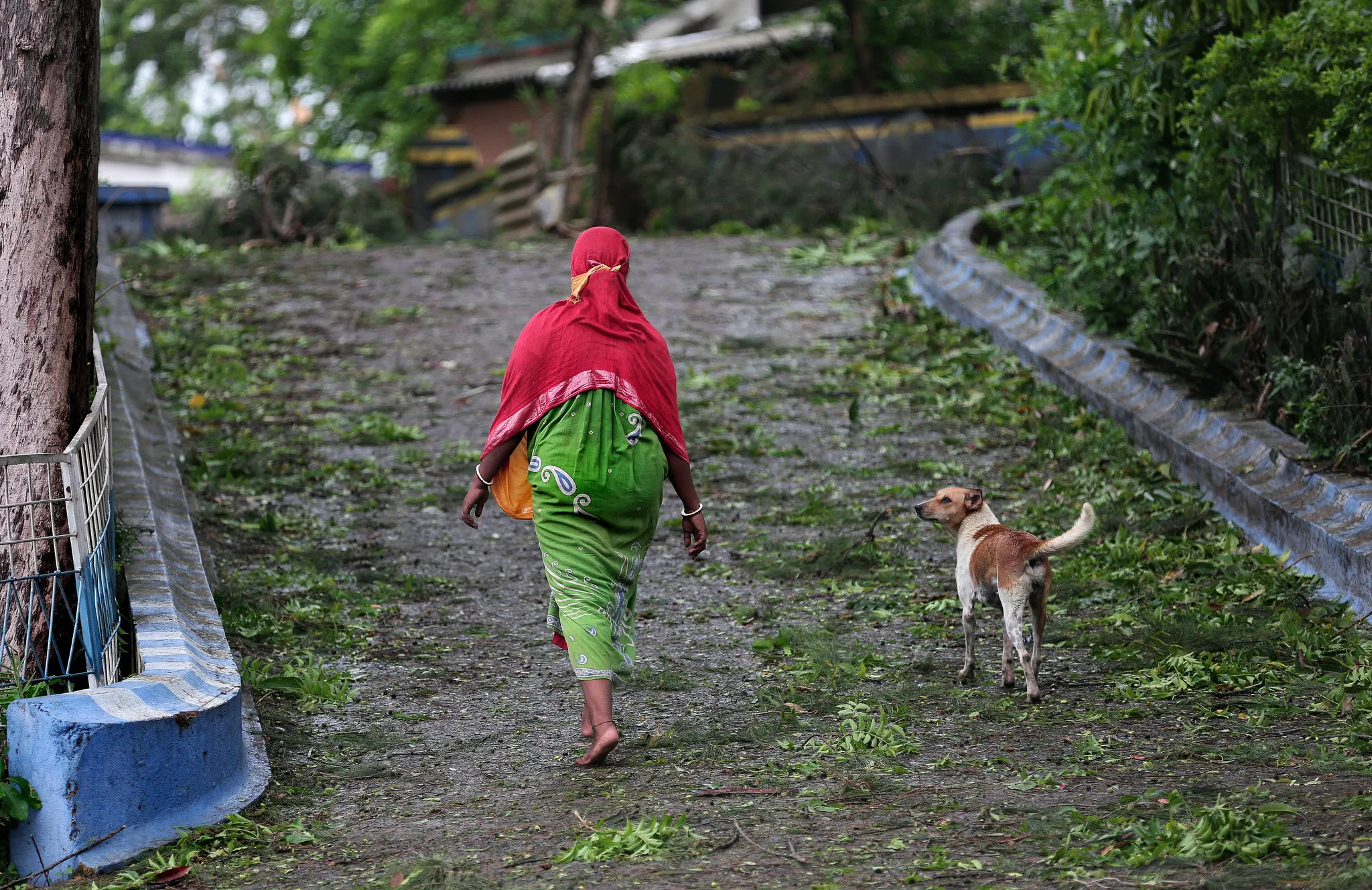 A woman walks among fallen branches as Cyclone Yaas makes landfall in Digha, near the Bay of Bengal, south of Kolkata, India, 26 May 2021. (Photo by Piyal Adhikary/EPA/EFE)