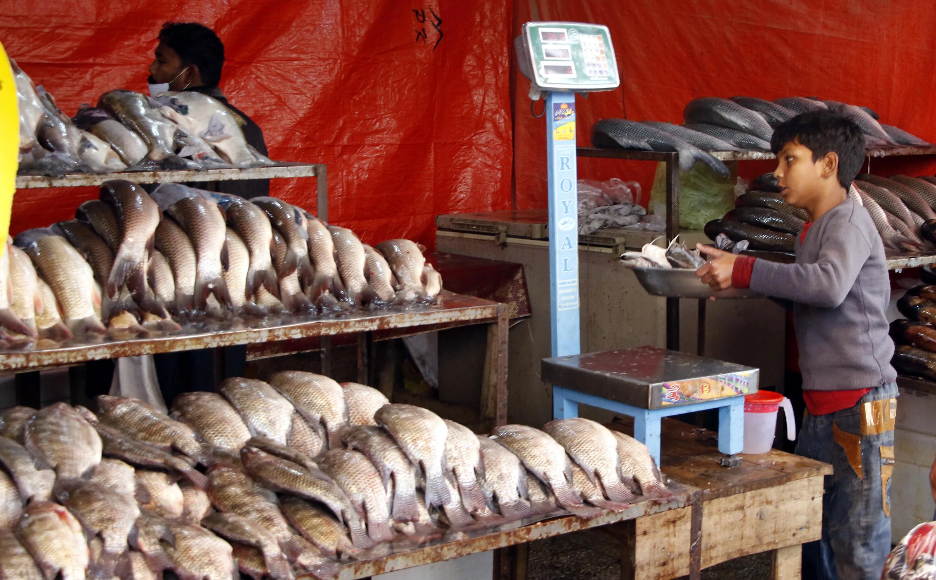 A man sells fish at a market in Islamabad, Pakistan, 08 December 2020. (Photo by Sohail Shahzad/EPA/EFE)