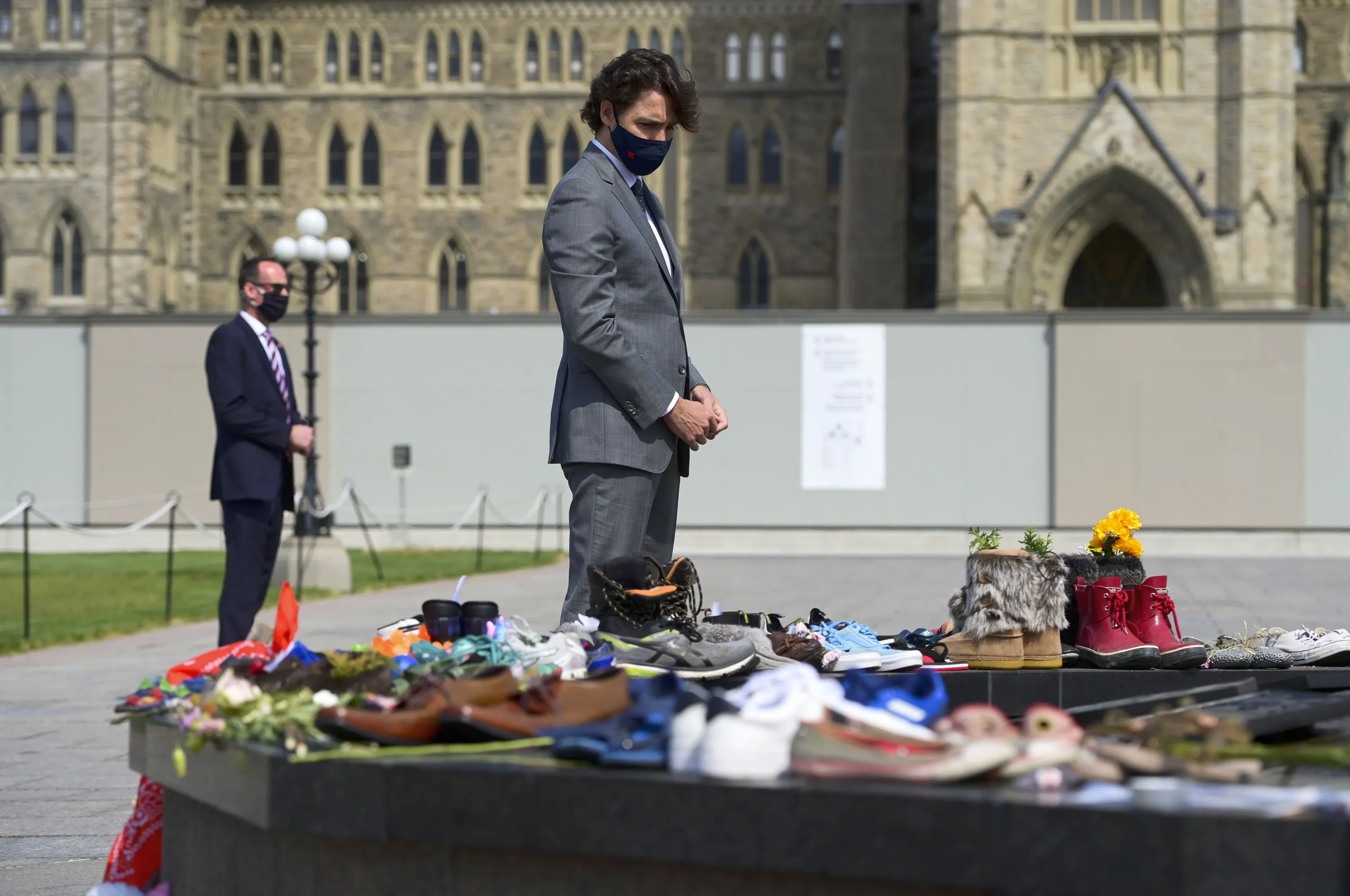Canadian Prime Minister Justin Trudeau visits a memorial at the Eternal Flame on Parliament Hill in Ottawa on Tuesday, June 1, 2021, that's in recognition of discovery of children's remains at the site of a former residential school in Kamloops, British Columbia. (Photo by Sean Kilpatrick/The Canadian Press via AP Photo)