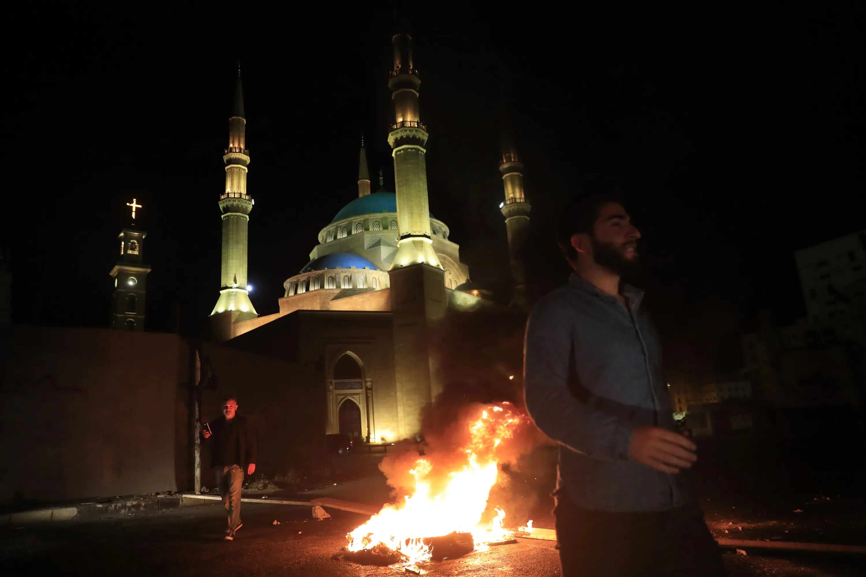 Protesters block a main road by burning tires, after a top court suspended a Central Bank decree that allowed the Lebanese to withdraw from dollar deposits at a rate two and a half times better than the fixed exchange rate, in downtown Beirut, Lebanon, early Thursday, June 3, 2021. In a late night burst of anger, dozens of protesters blocked main roads in Beirut and north of the capital to protest against the constant humiliation of Lebanese who line up to fill their cars with fuel, increasing power cuts, search for medicine and deal with confused banking decisions that are robbing thousands of their savings. (Photo by Hussein Malla/AP Photo)