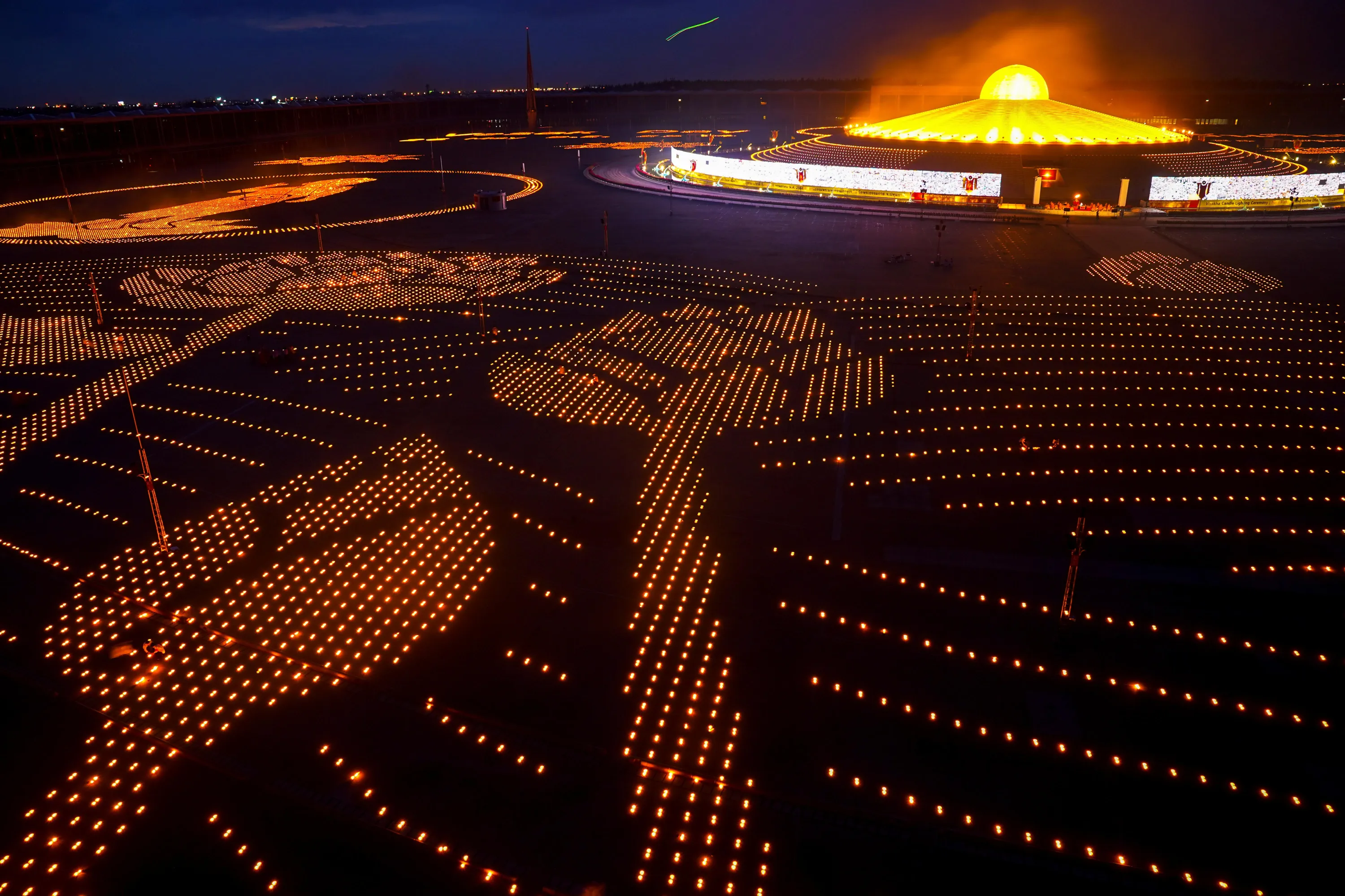 Candles are lit during Vesak Day, an annual celebration of Buddha's birth, enlightenment and death at the Dhammakaya temple amid the coronavirus disease (COVID-19) pandemic in Pathum Thani province, Thailand, May 26, 2021. (Photo by Athit Perawongmetha/Reuters)