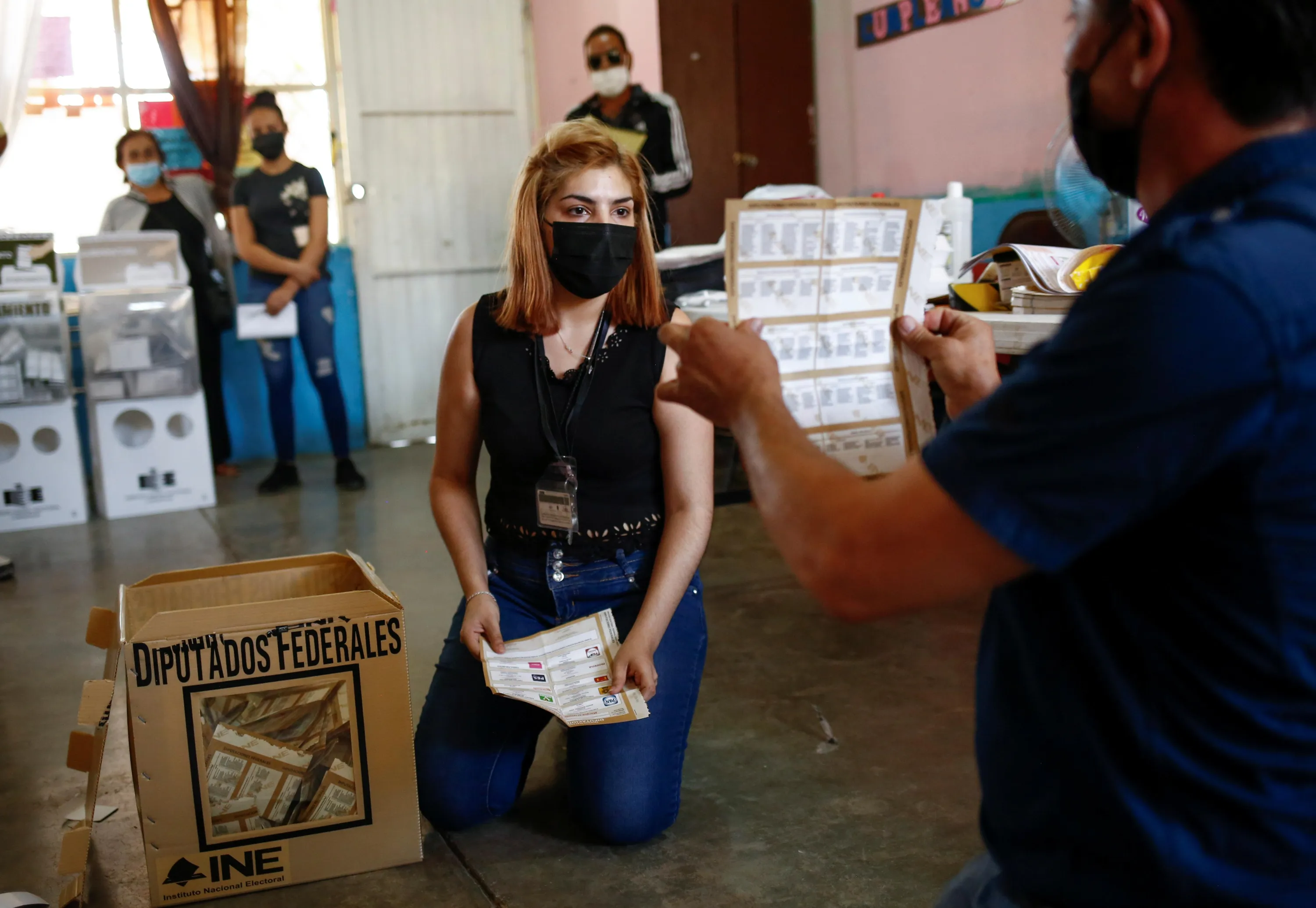 Electoral workers count ballots after polls closed on mid-term election day at a polling station in Ciudad Juarez, Mexico on June 6, 2021. (Photo by Jose Luis Gonzalez/Reuters)