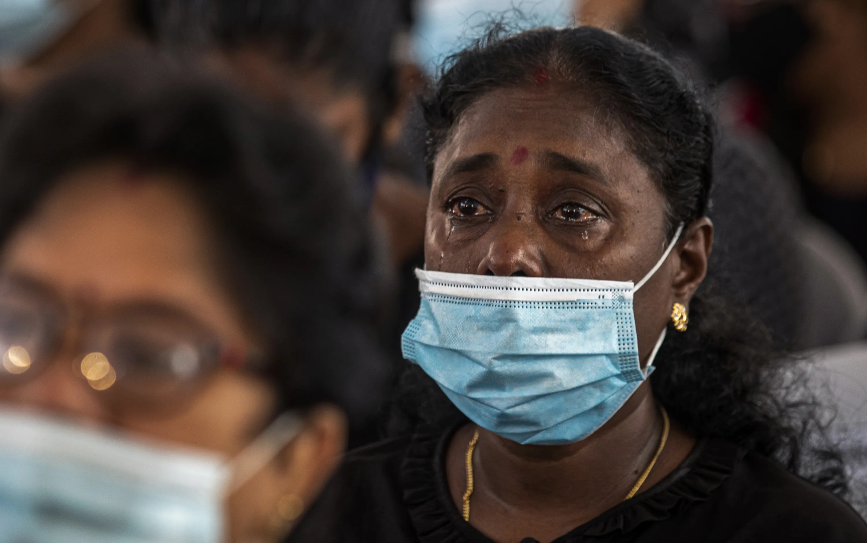 A Sri Lankan woman weeps during a memorial service for the victims of 2019 Easter Sunday attacks at St. Anthony's Church in Colombo, Sri Lanka, Wednesday, April 21, 2021. Wednesday marked the second anniversary of the serial blasts that killed 269 people. (Photo by Eranga Jayawardena/AP Photo)