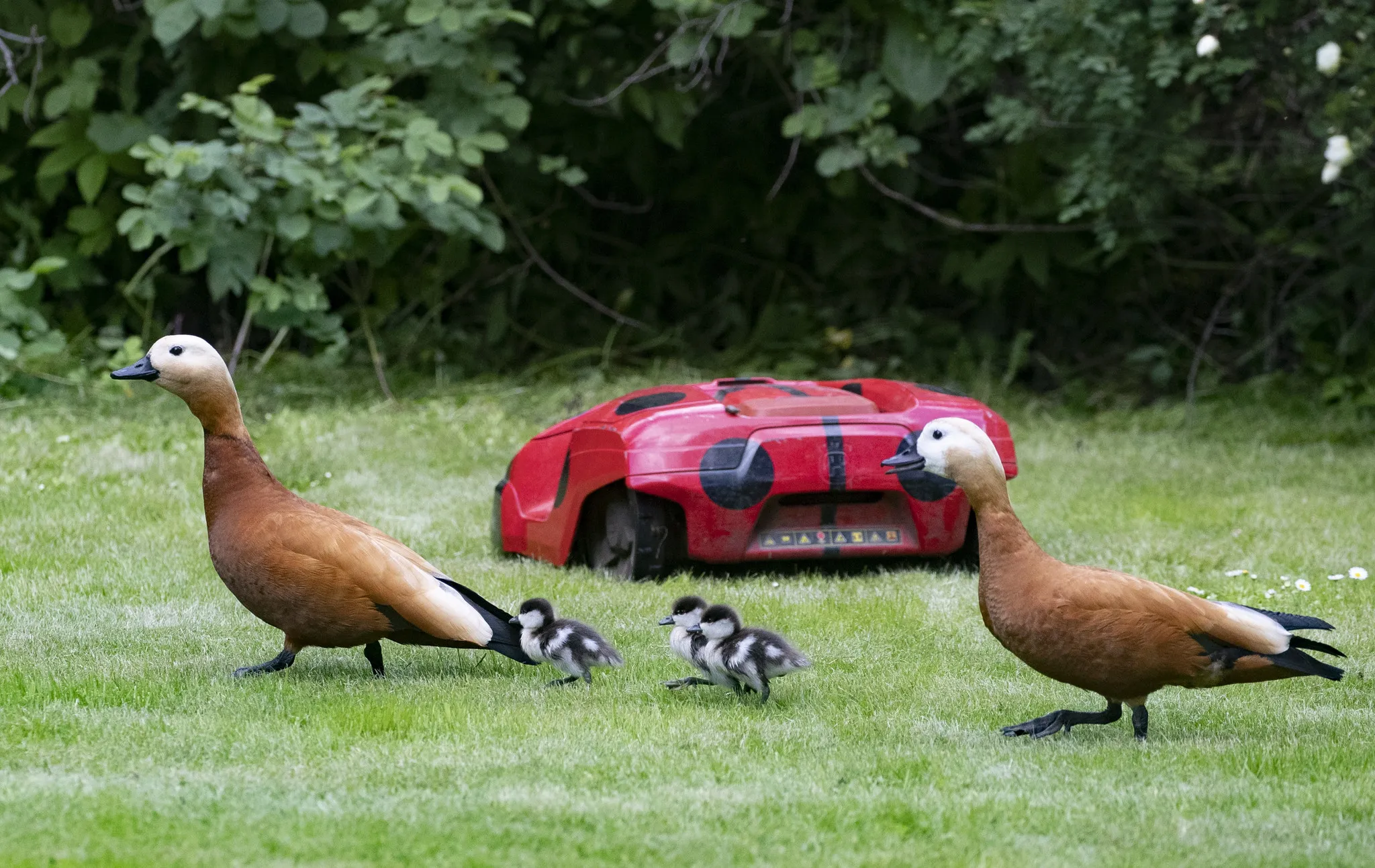 Red ducks (Ogare) with ducklings walk in the Botanic Gardens of Moscow State University “Apothecary Garden” in Moscow, Russia, 02 June 2021. Apothecary Garden is Russia's oldest botanic garden which was founded in 1706 by decree of Peter the Great. Parks, squares and natural areas occupy 49 percent of the area Moscow. This year, Moscow will be decorated with 54 million flowers, roses, tulips, carnations and many others. (Photo by Sergei Ilnitsky/EPA/EFE)