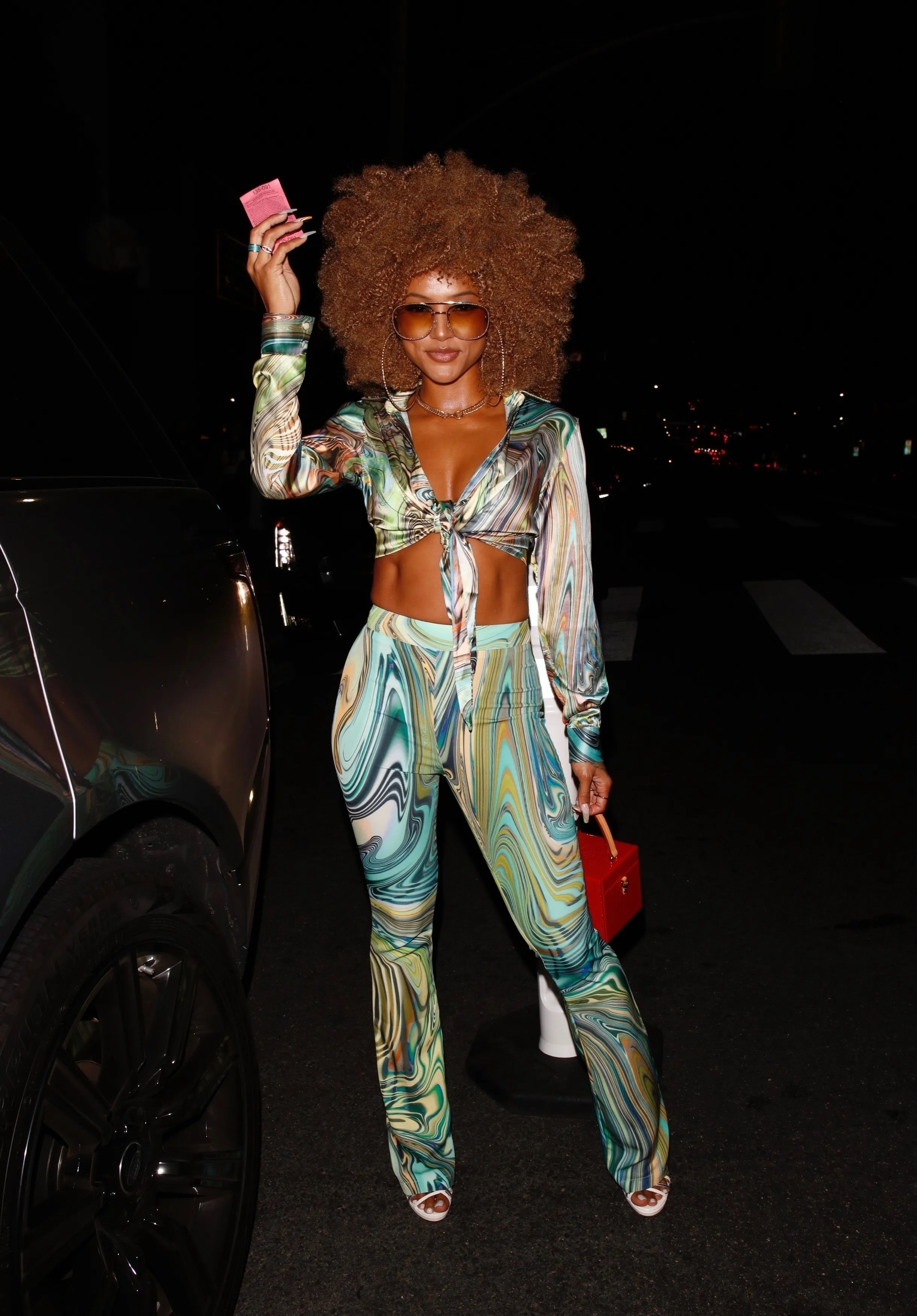 American actress and model Karrueche Tran looks fierce as she channels her inner Foxy Cleopatra at an Austin Powers-themed birthday bash for Ajay Sangha at Petite Taqueria in West Hollywood on June 6, 2021. (Photo by Backgrid USA)
