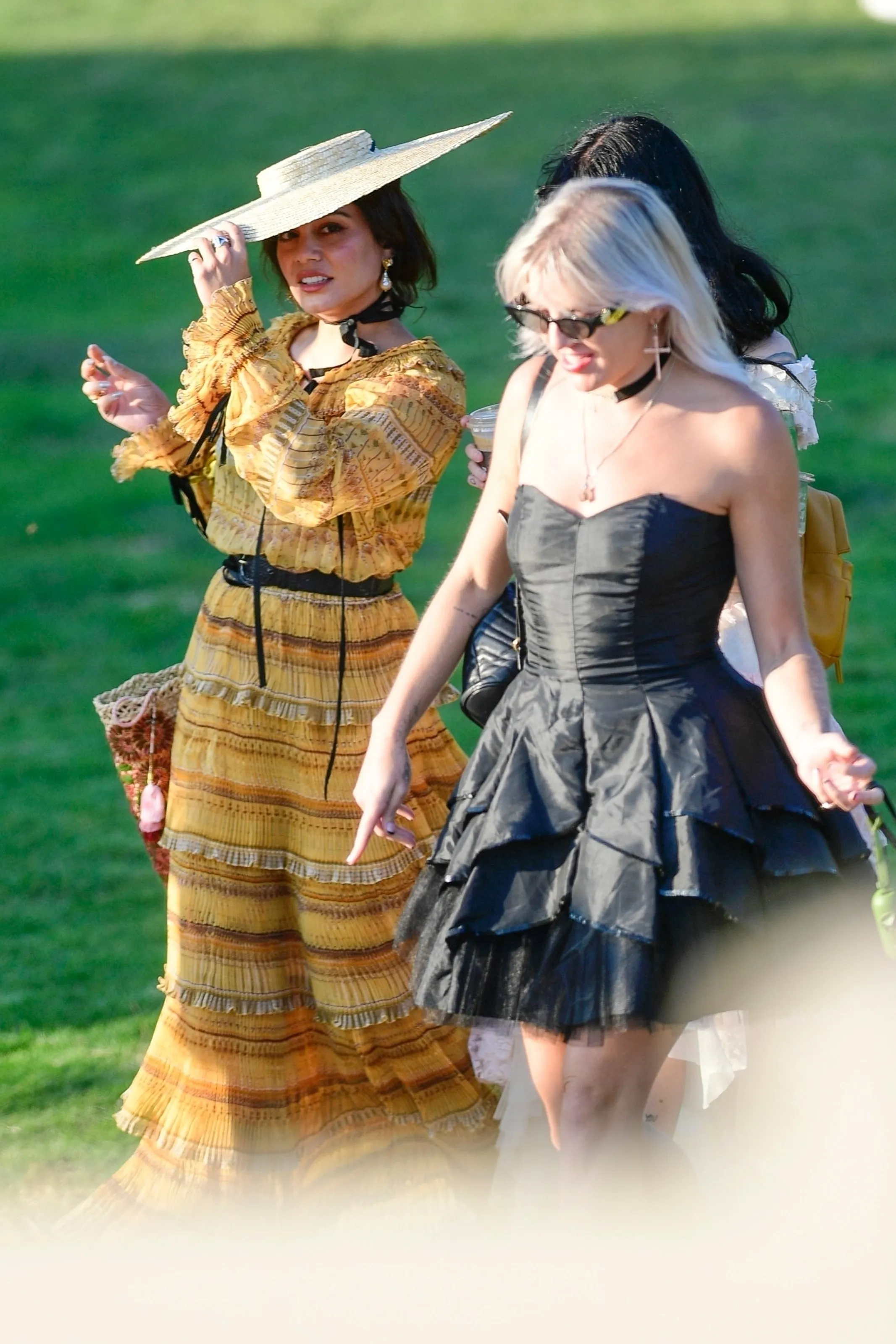 American actress Vanessa Hudgens (L) has fun with BFF GG Magree and a bunch of friends during a party in the park with their pets in Los Angeles, CA. on June 3, 2021. (Photo by Backgrid USA)