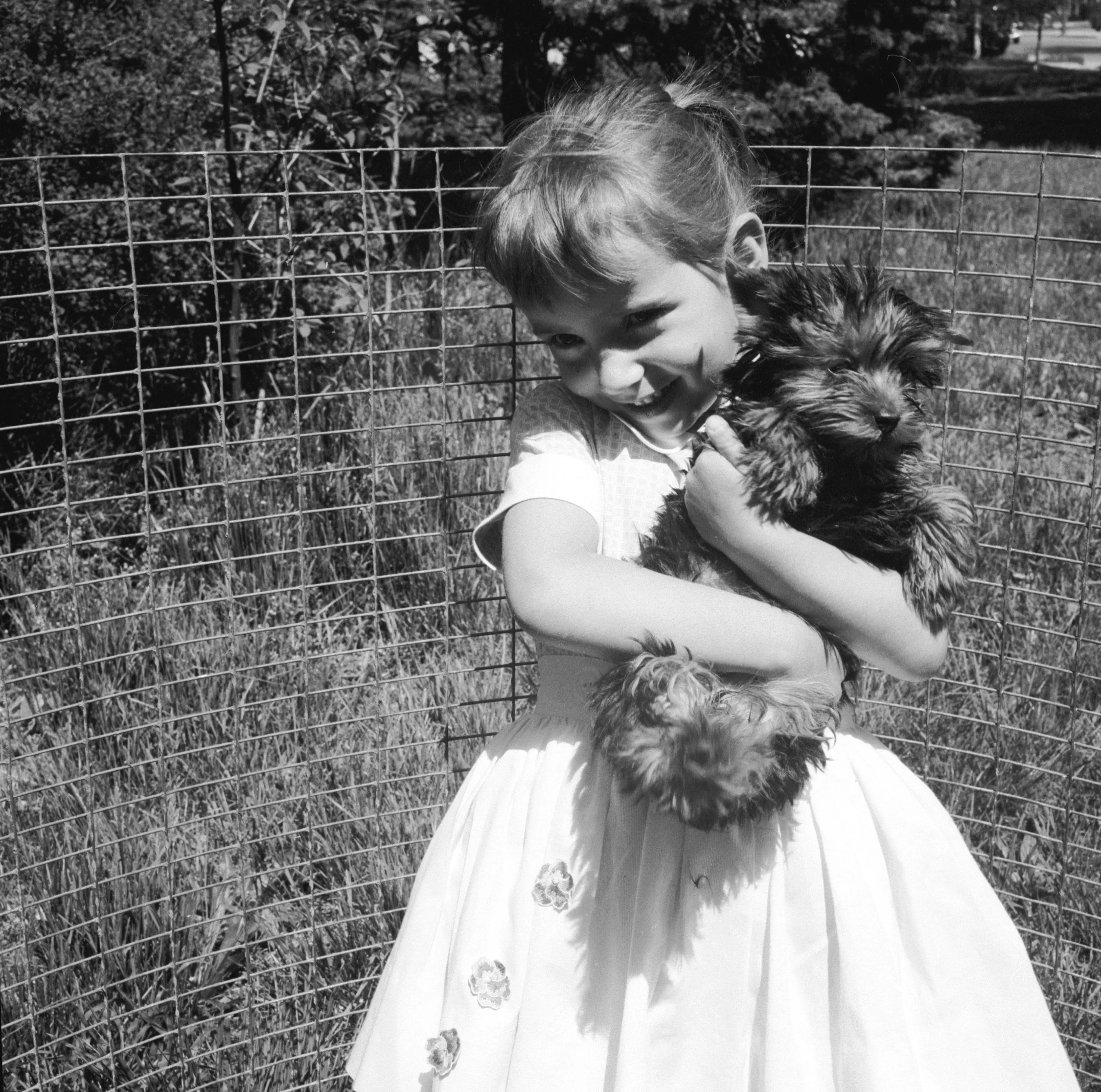 A young girl holding a long haired terrier, circa 1956. (Photo by Three Lions/Getty Images)