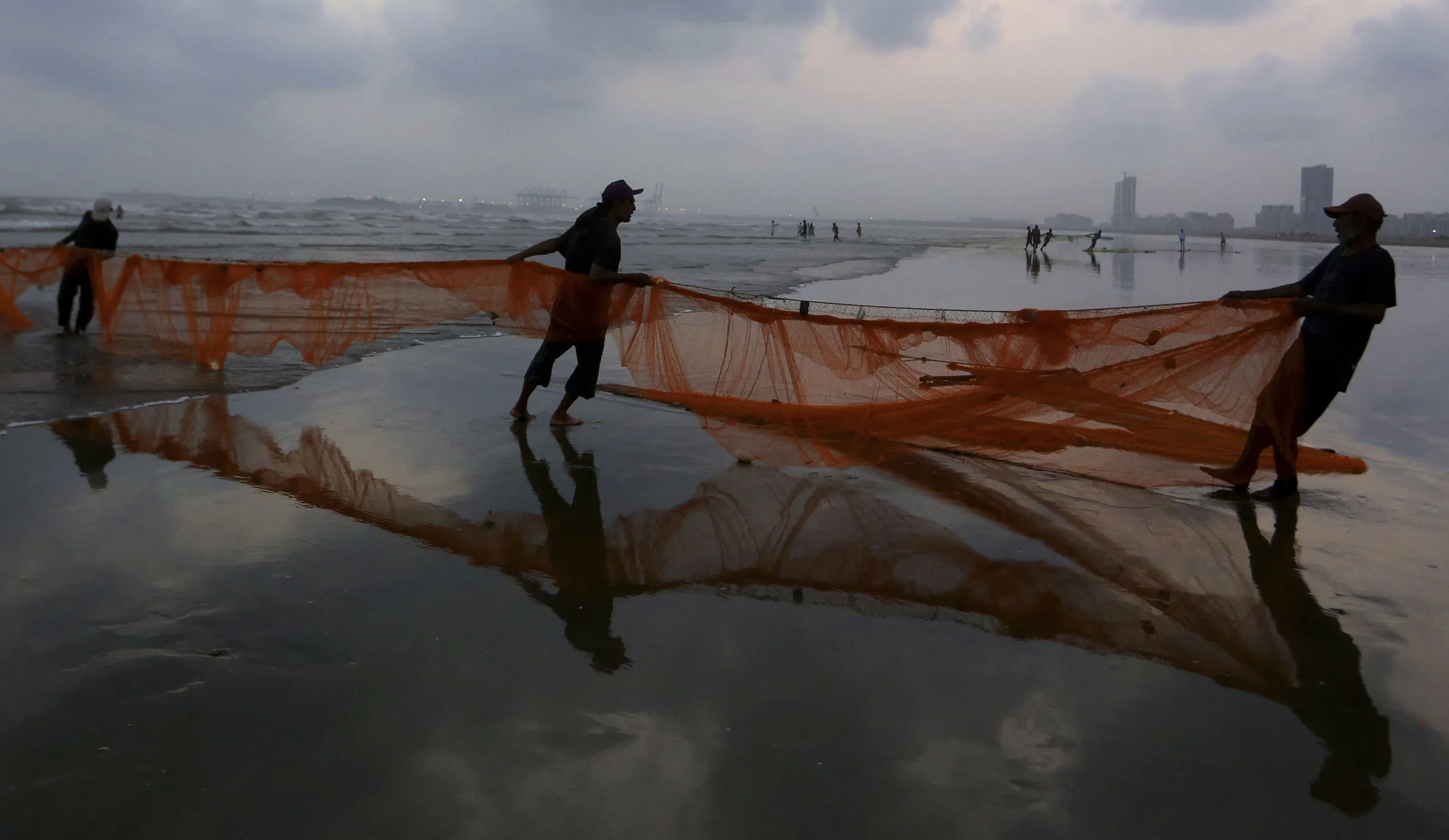 Pakistani fishermen pull their net out of the sea onto the beach in Karachi, Pakistan, Saturday, May 29, 2021. (Photo by Fareed Khan/AP Photo)