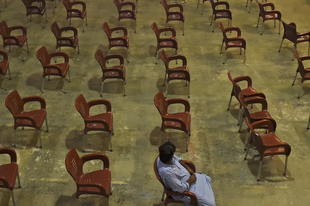 A man waits to get himself inoculated with the Covid-19 coronavirus vaccine at a vaccination centre in Karachi on May 14, 2021. (Photo by Rizwan Tabassum/AFP Photo)