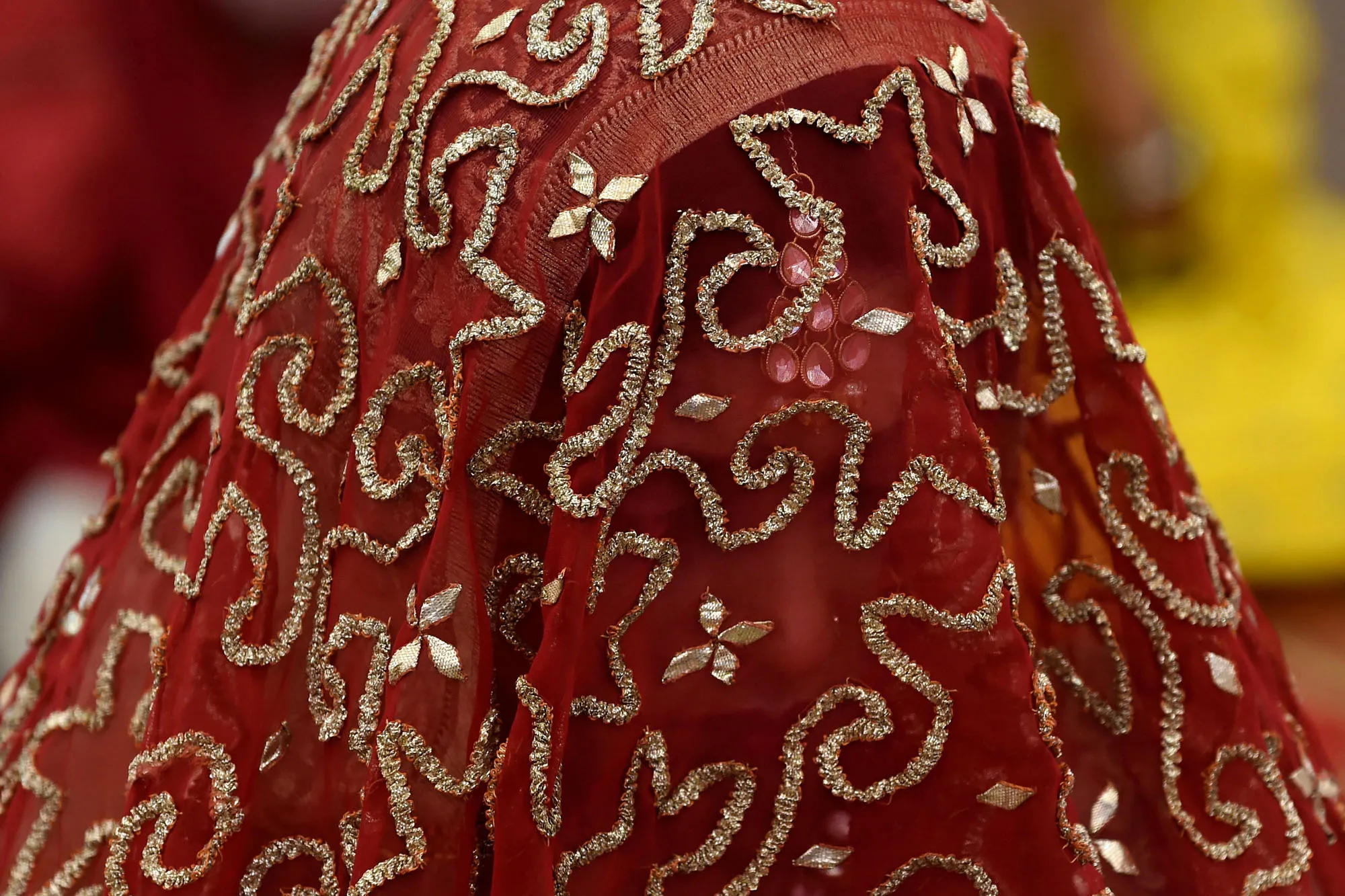 A Muslim bride offers prayers on the last Friday of the holy month of Ramadan at the historical Badshahi Masjid ahead of the Eid al-Fitr in Lahore on May 7, 2021. (Photo by Arif Ali/AFP Photo)