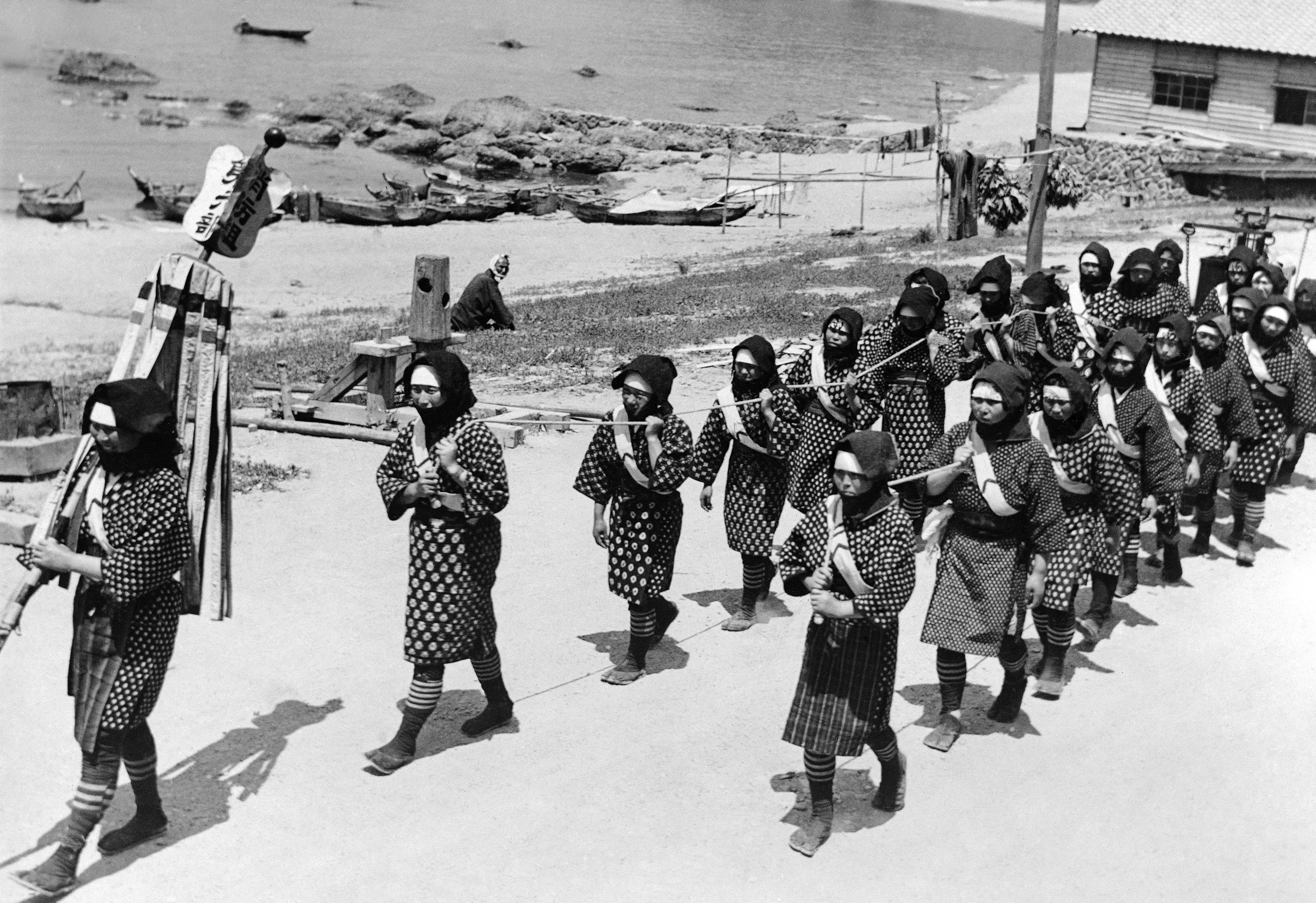 In the smaller towns of Japan, especially in the fishing villages, the women are the firemen. Many of the men have volunteered for service with the Japanese army in North China. A brigade of feminine fire-fighters in the Tohoku district of Japan going through their drill on the beach, on September 2, 1937. (Photo by AP Photo)