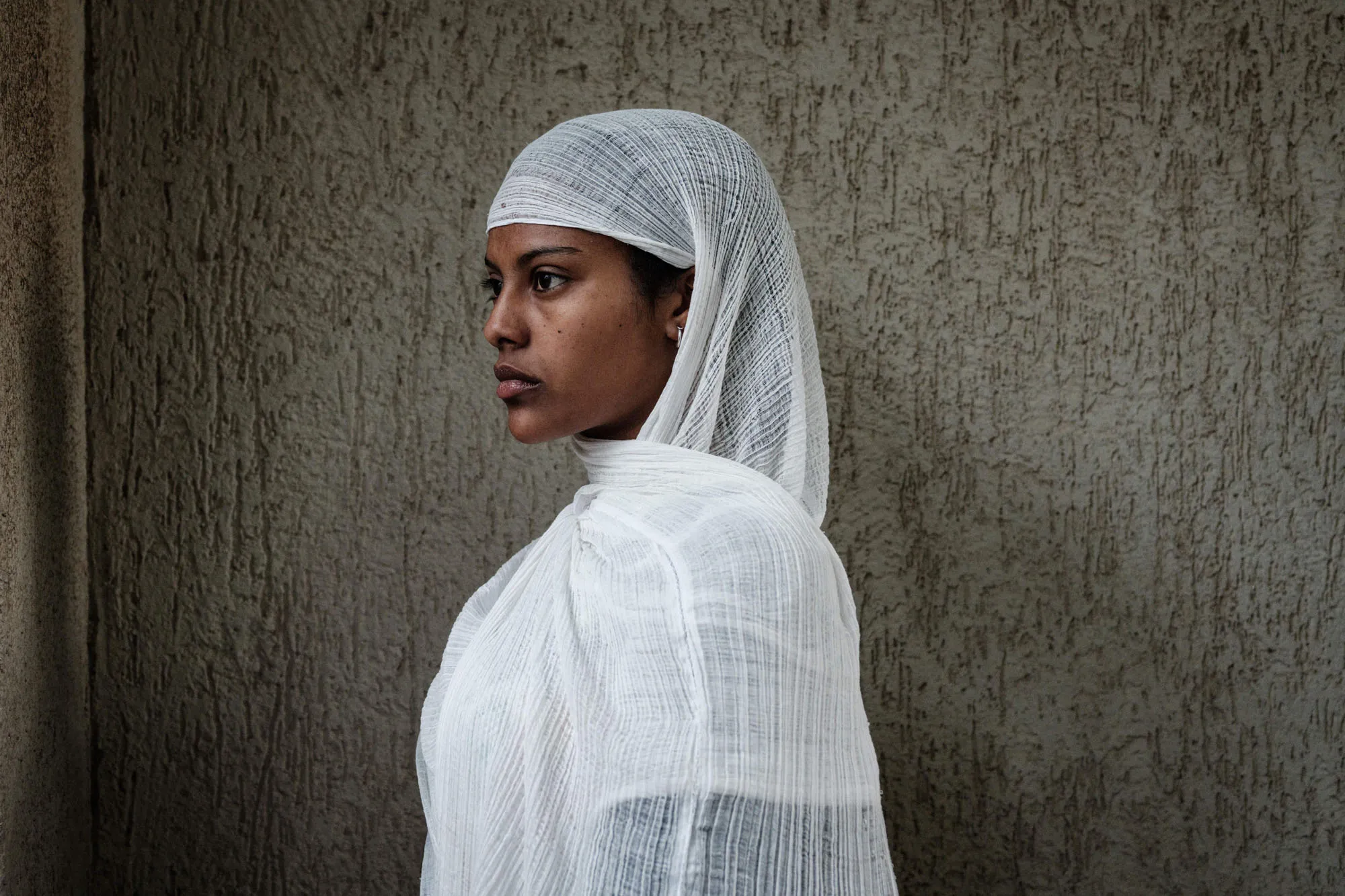 An Ethiopian Orthodox devotee waits to attend the Saint Michael's anniversary celebration at St. Michael church in Mekele, the capital of Tigray region, Ethiopia, on June 19, 2021. (Photo by Yasuyoshi Chiba/AFP Photo)
