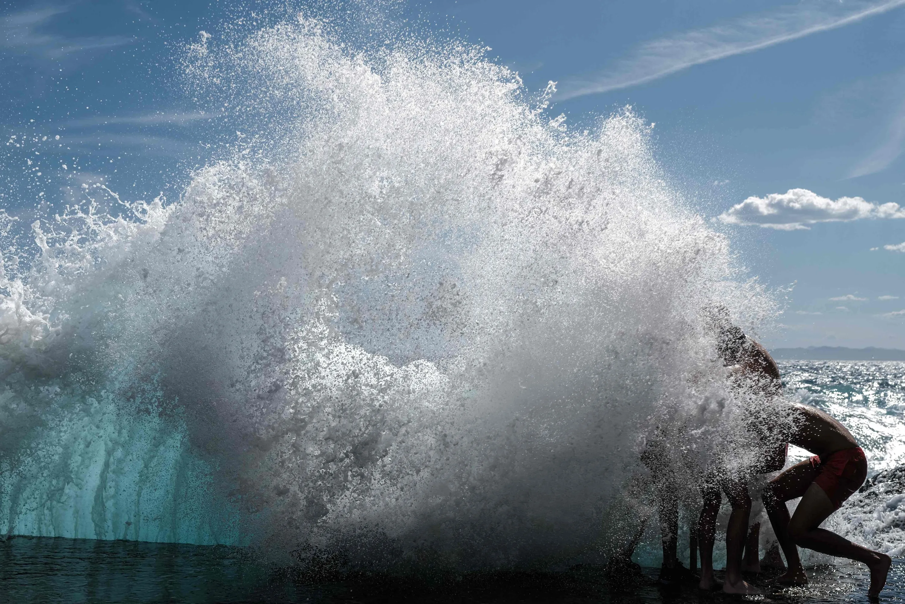 Bathers play in the waves of the Mediterranean sea in Nice on June 29, 2021. (Photo by Valery Hache/AFP Photo)