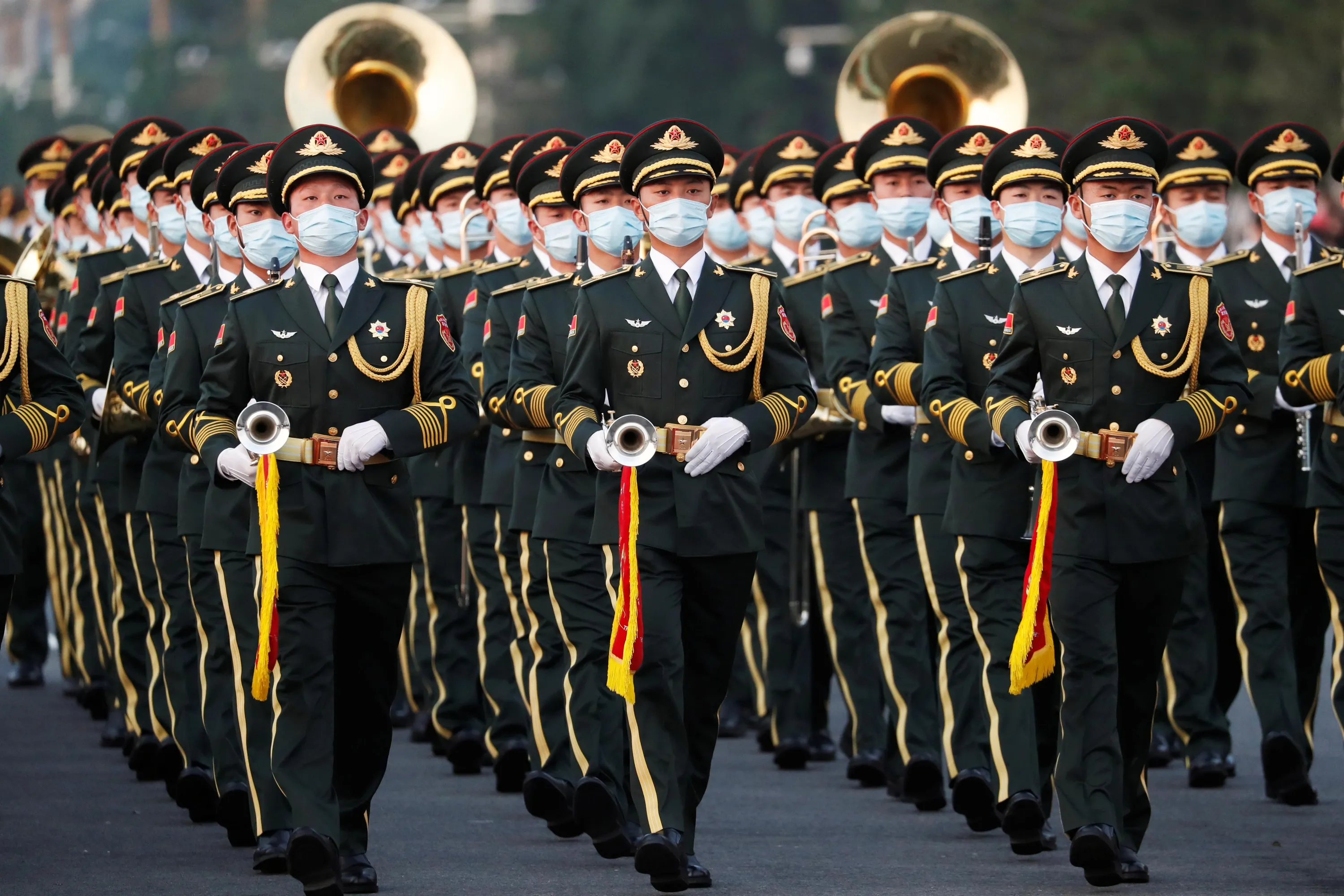 Military band members rehearse before the event marking the 100th founding anniversary of the Communist Party of China, on Tiananmen Square in Beijing, China on July 1, 2021. (Photo by Carlos Garcia Rawlins/Reuters)