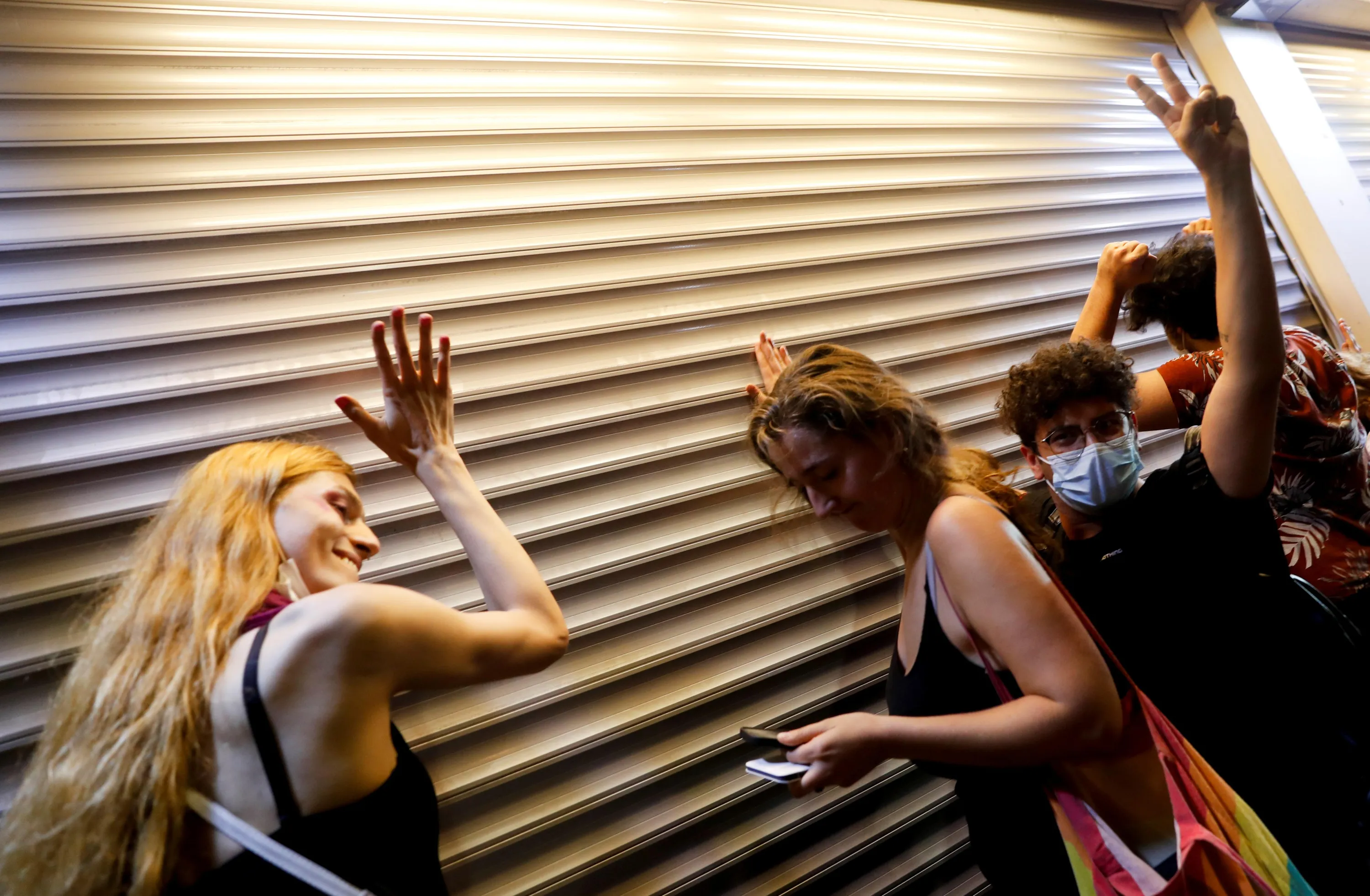German singer and songwriter Liana Georgi hits a metallic curtain as she participates in a protest against Turkey's withdrawal from the Istanbul Convention, an international accord designed to protect women, in Istanbul, Turkey, July 1, 2021. (Photo by Murad Sezer/Reuters)