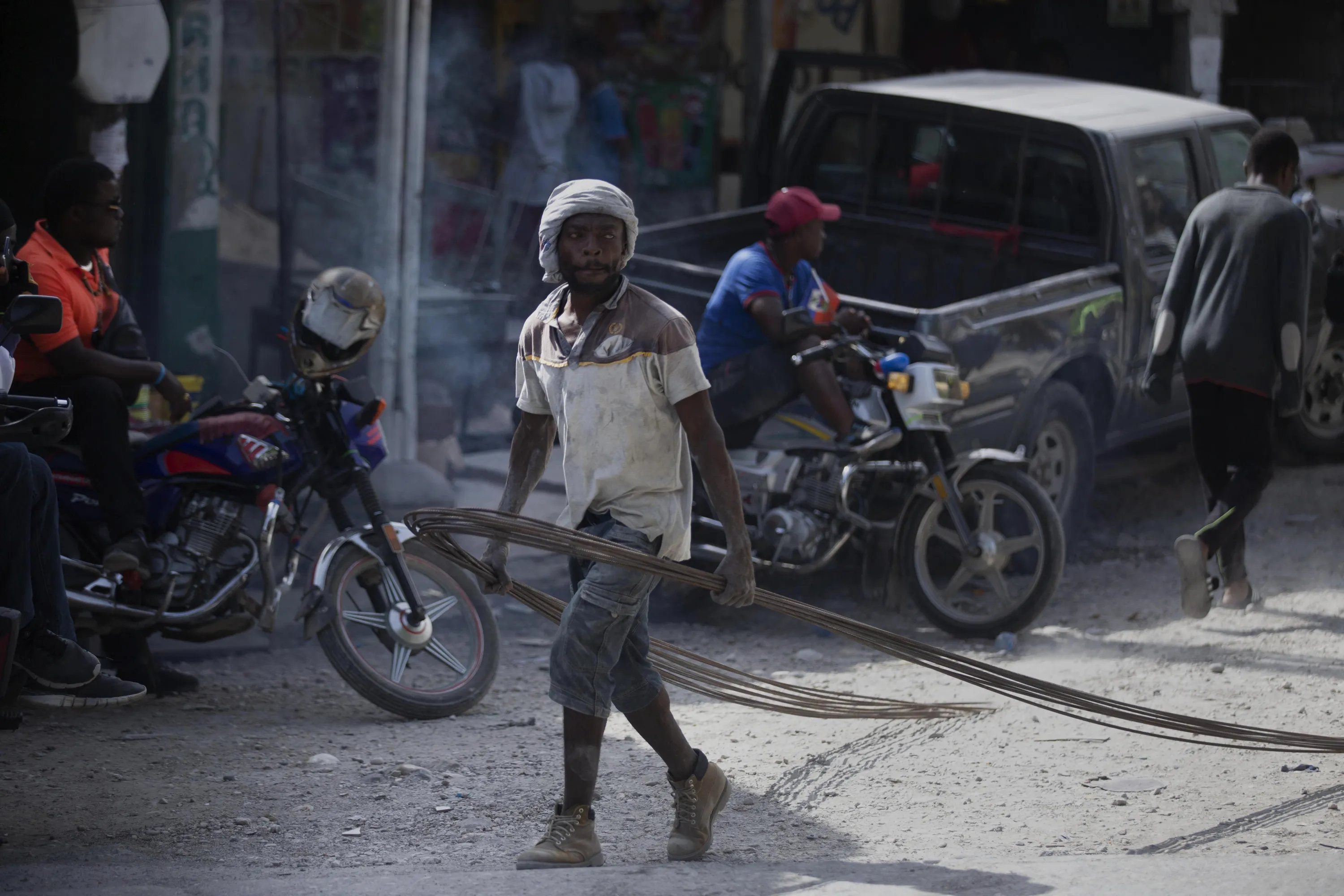 A worker carries steel rebar for a construction project a day after the murder of President Jovenel Moise, in Port-au-Prince, Haiti, Thursday, July 8, 2021. (Photo by Joseph Odelyn/AP Photo)