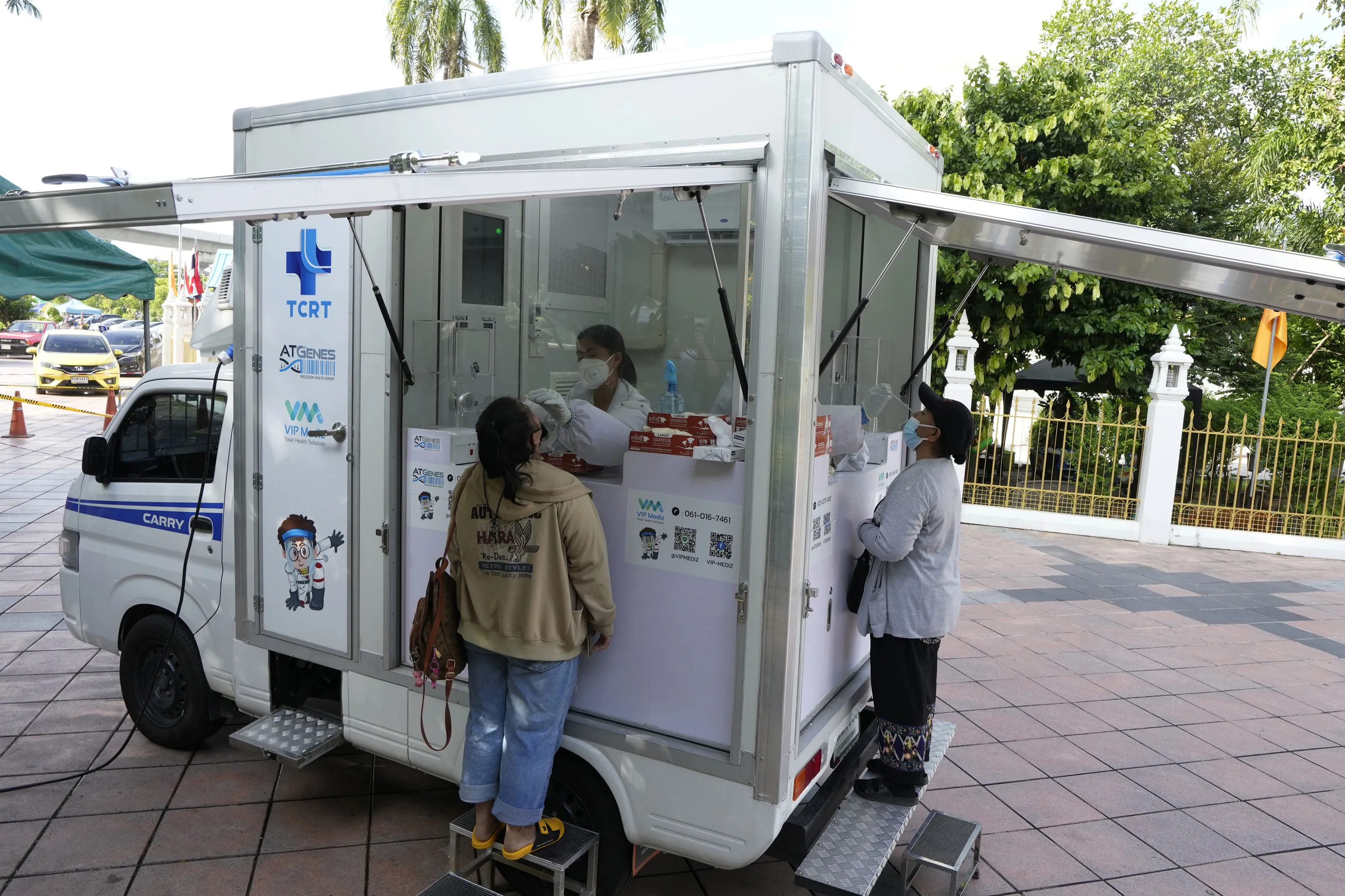 Health workers collect nasal swabs from locals who were waiting through the night for free coronavirus testing at Wat Phra Si Mahathat temple in Bangkok, Thailand, Friday, July 9, 2021. Faced with rapidly rising numbers of new coronavirus infections and growing concern over the proliferation of the highly contagious delta variant, major Asia-Pacific cities implemented new restrictions Friday in the hope of reversing the trend before health care systems are overwhelmed. (Photo by Sakchai Lalit/AP Photo)