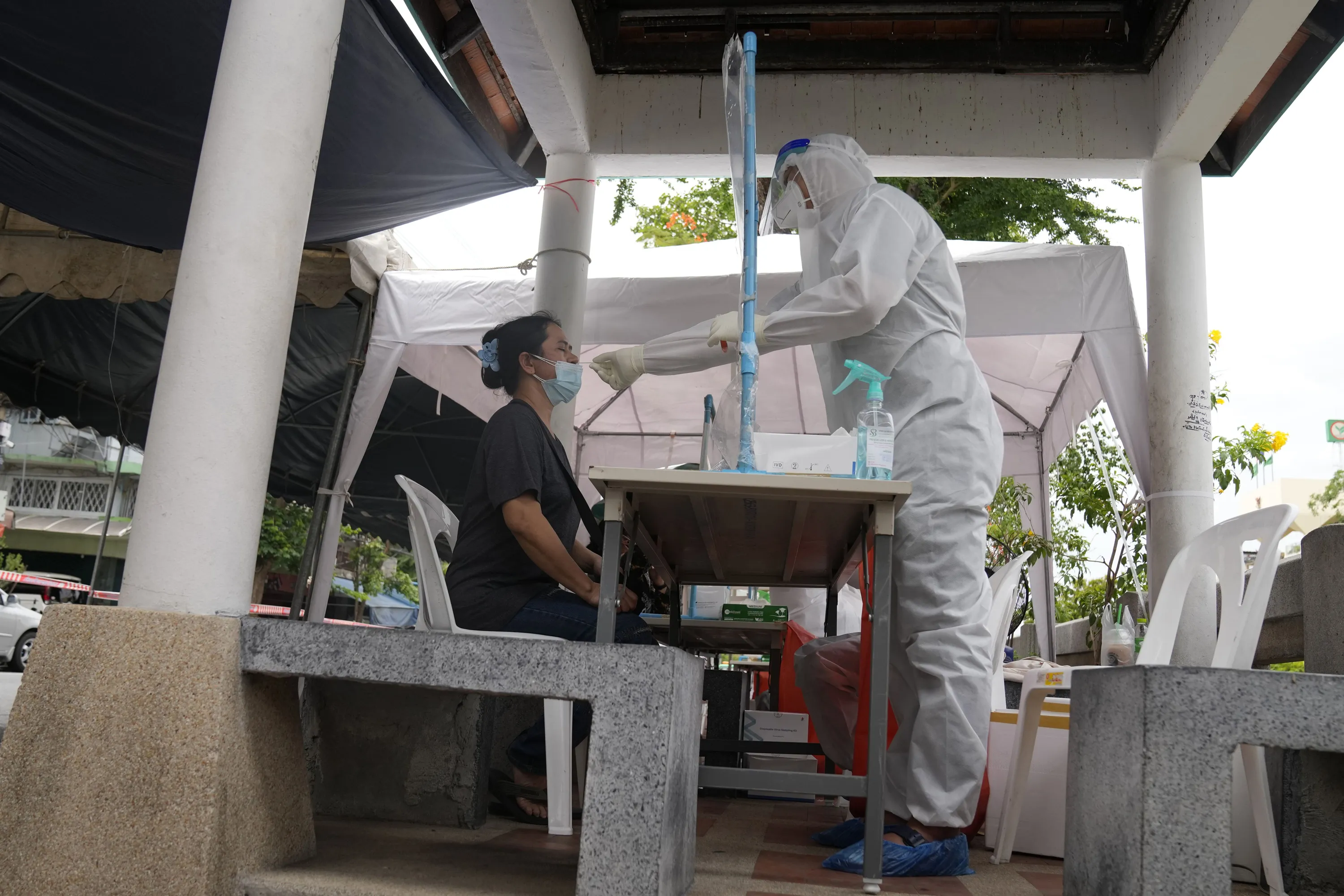 A Health worker collect nasal swabs from local residents for coronavirus testing in Bangkok, Thailand, Thursday, July 8, 2021. (Photo by Sakchai Lalit/AP Photo)