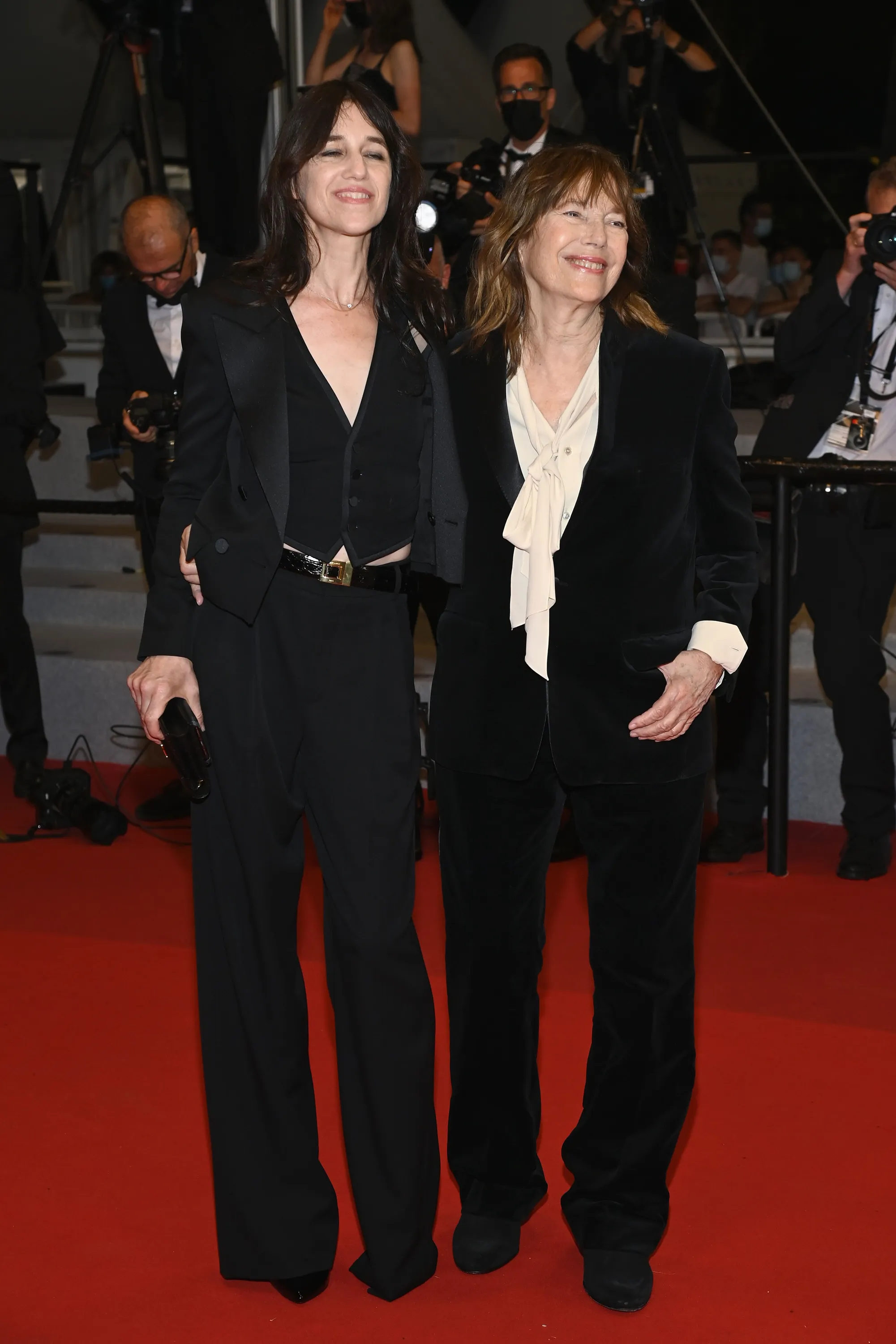 English-French actress Charlotte Gainsbourg (L) and English singer and actress Jane Birkin attend the screening of “Jane Par Charlotte (Jane By Charlotte)” during the 74th annual Cannes Film Festival on July 07, 2021 in Cannes, France. (Photo by Pascal Le Segretain/Getty Images)