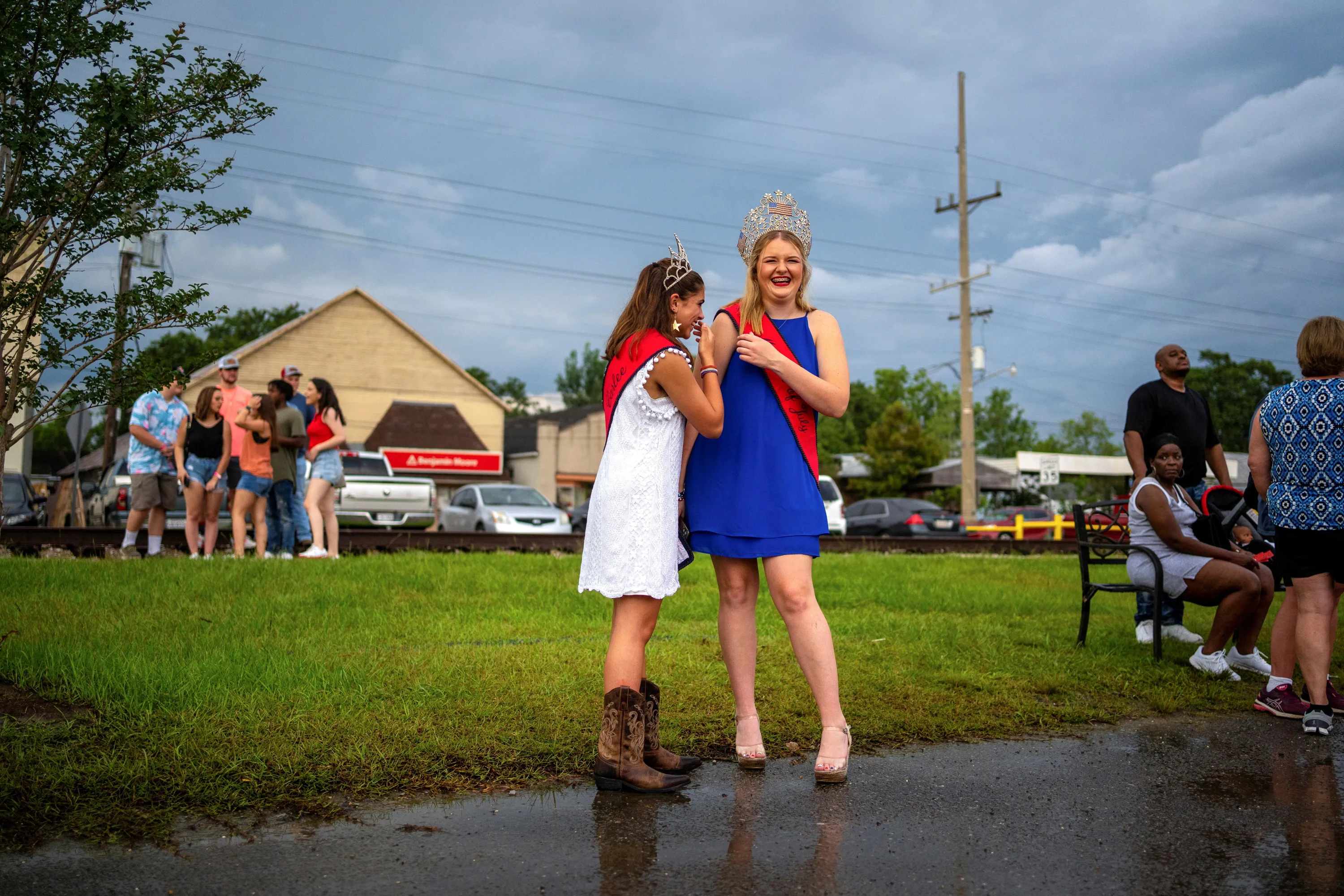 Carlee Leblac, who is Erath's Miss Teen 4th of July 2021 and Haylie Rudisill, 17, who is Erath's Miss 4th of July 2021 joke around as 4th of July weekend celebrations take place in Erath, Louisiana, U.S., July 3, 2021. (Photo by Kathleen Flynn/Reuters)