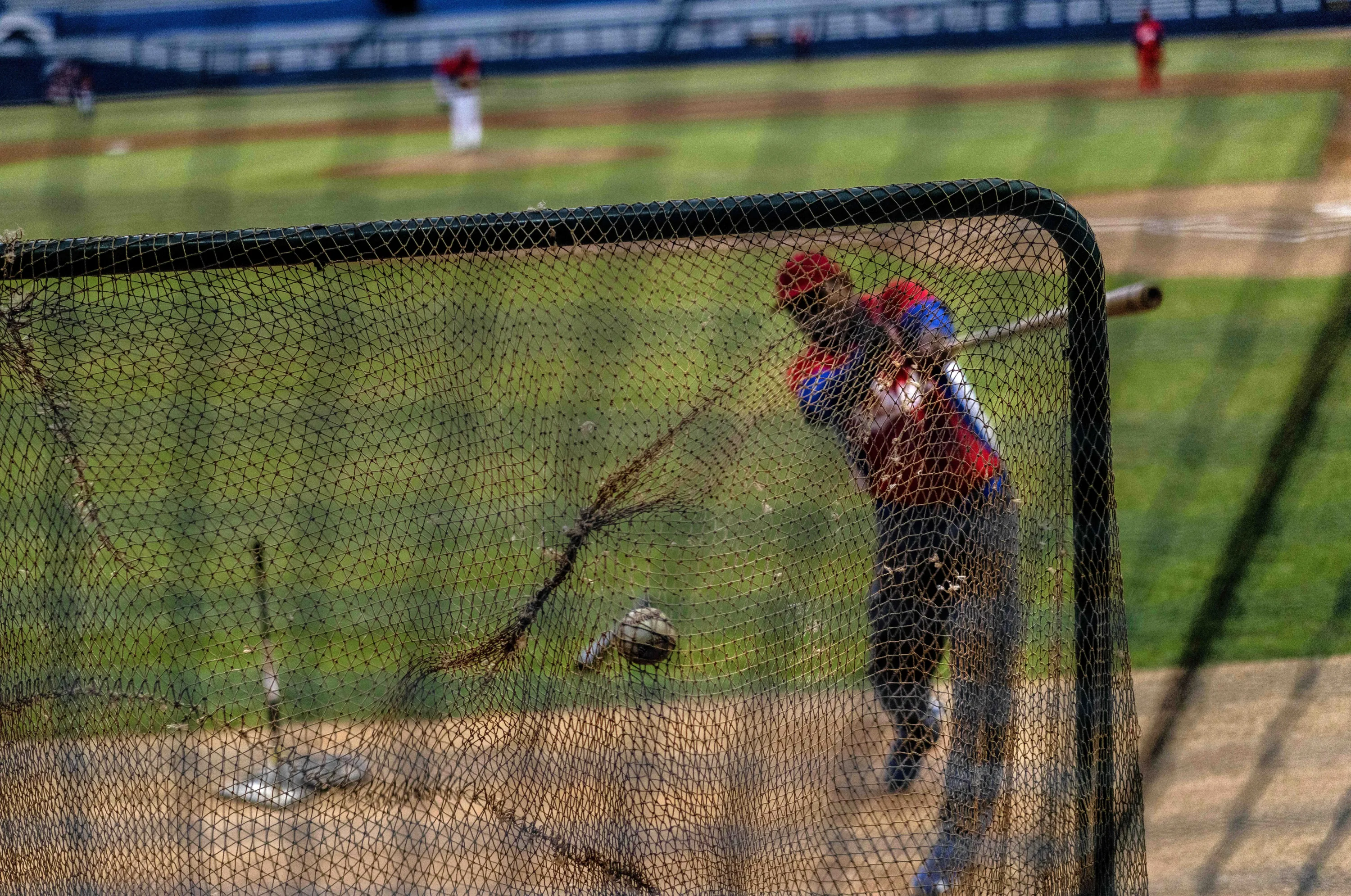 A Cuban baseball player hits the ball during a training session at the Estadio Latinoamericano in Havana, Cuba, Tuesday, May 18, 2021. A little over a week after the start of the Las Americas Baseball Pre-Olympic in Florida, the Cuban team does not have visas to travel to the United States. (Photo by Ramon Espinosa/AP Photo)