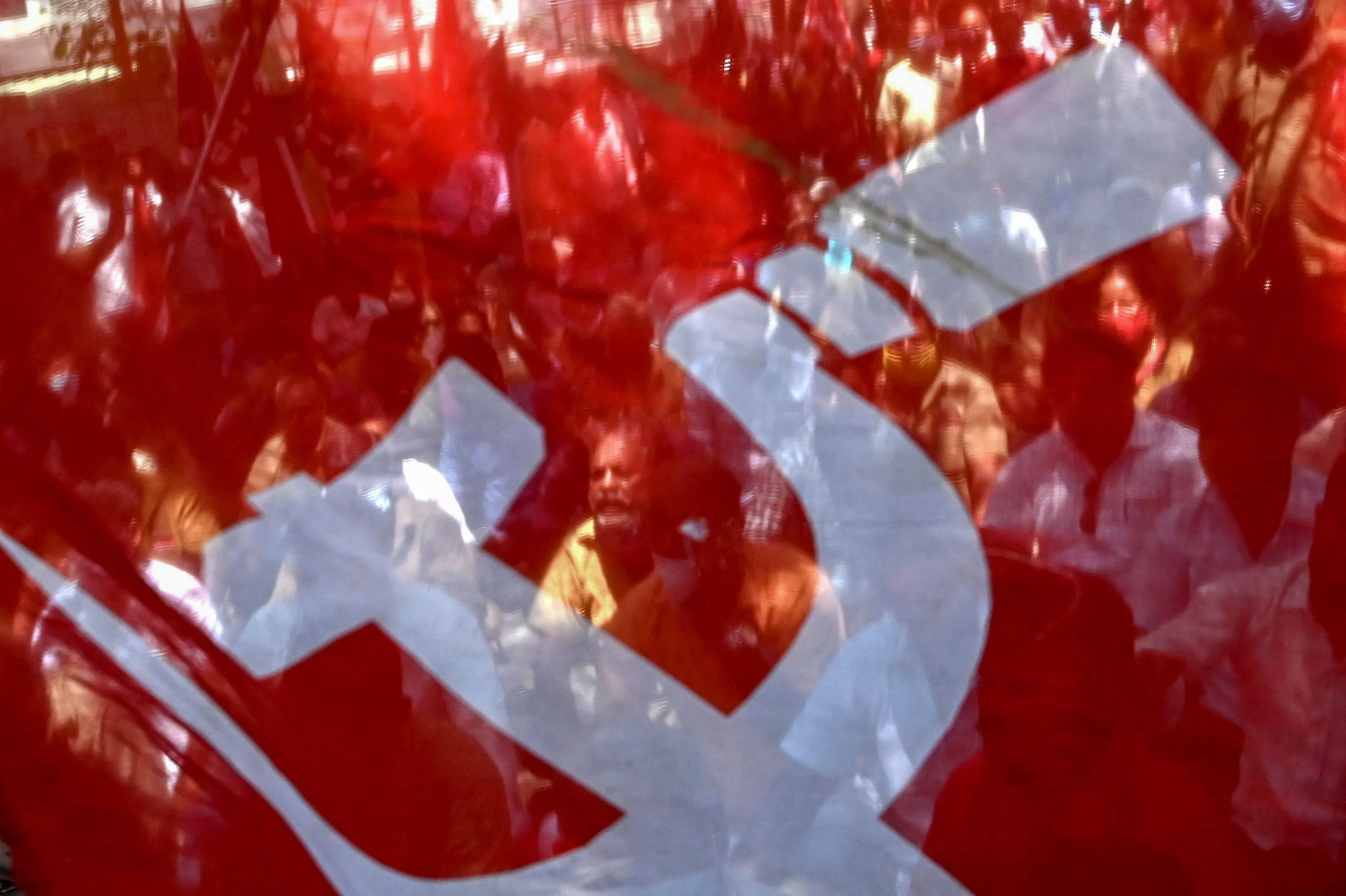 Members of the Communist party of India Trade Unions shout slogans as they stage protest against the price increase of petrol in Chennai on July 6, 2021. (Photo by Arun Sankar/AFP Photo)