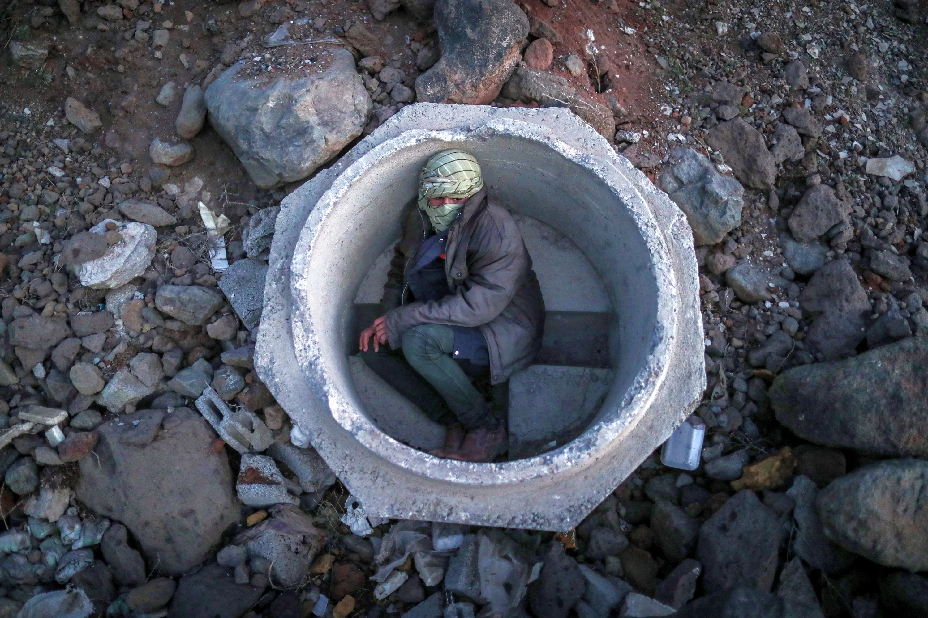 An Afghan boy hides inside a sewer pipe made of concrete next to a railway near Van city after crossing the Iran-Turkey border, 02 June 2021. Illegal immigrants and non-recognized refugees wait for days for their smugglers to transfer them to Diyarbakir city to reach West Turkey. The city of Van, on the Turkish-Iranian border, is one of the points at which human smuggling can be easily spotted. Smugglers charge between 600 or 1,000 US dollars per person, depending on the security situation at the border. (Photo by Sedat Suna/EPA/EFE)