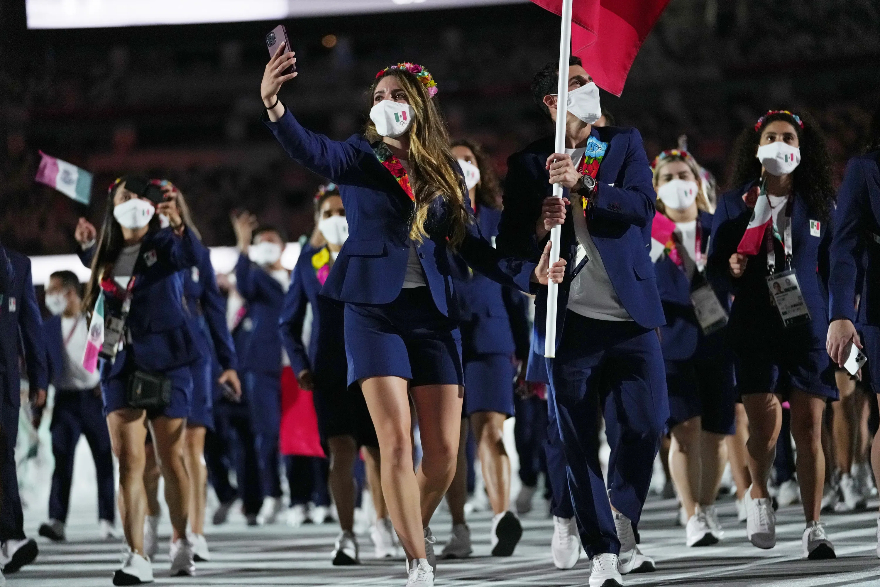 Gaby Lopez and Rommel Pacheco Marrufo, of Mexico, carry their country's flag during the opening ceremony in the Olympic Stadium at the 2020 Summer Olympics, Friday, July 23, 2021, in Tokyo, Japan. (Photo by Petr David Josek/AP Photo)