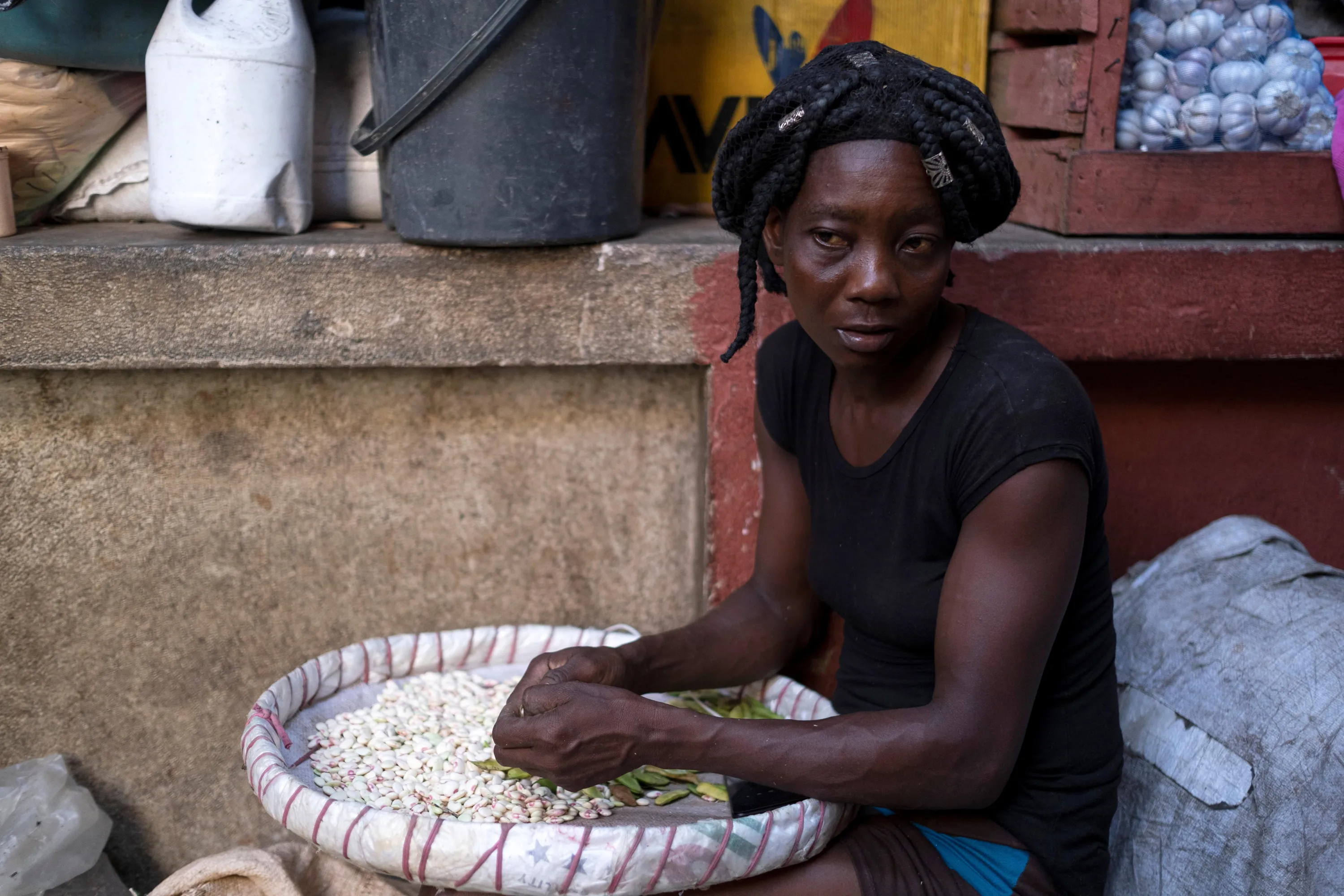 A woman peels beans at a fresh market in Port-au-Prince, Haiti on July 17, 2021. (Photo by Ricardo Arduengo/Reuters)