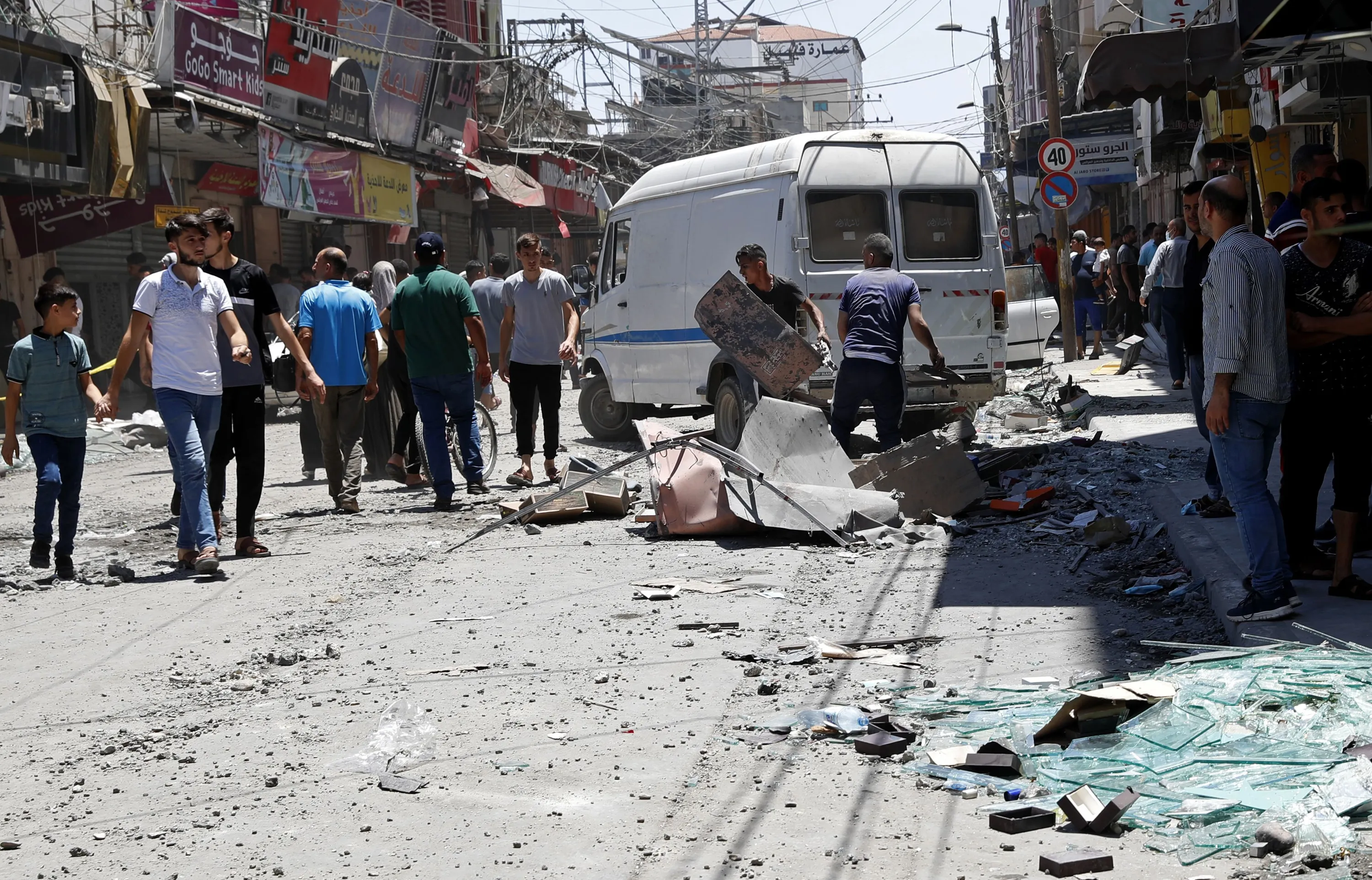 Palestinian merchants clean up their storefronts after an explosion in the Al-Zawiya market area of Gaza City, Thursday, July 22, 2021. At least one person was killed and some 10 injured Thursday when the explosion tore through a house in a popular market, the interior ministry said. (Photo by Adel Hana/AP Photo)
