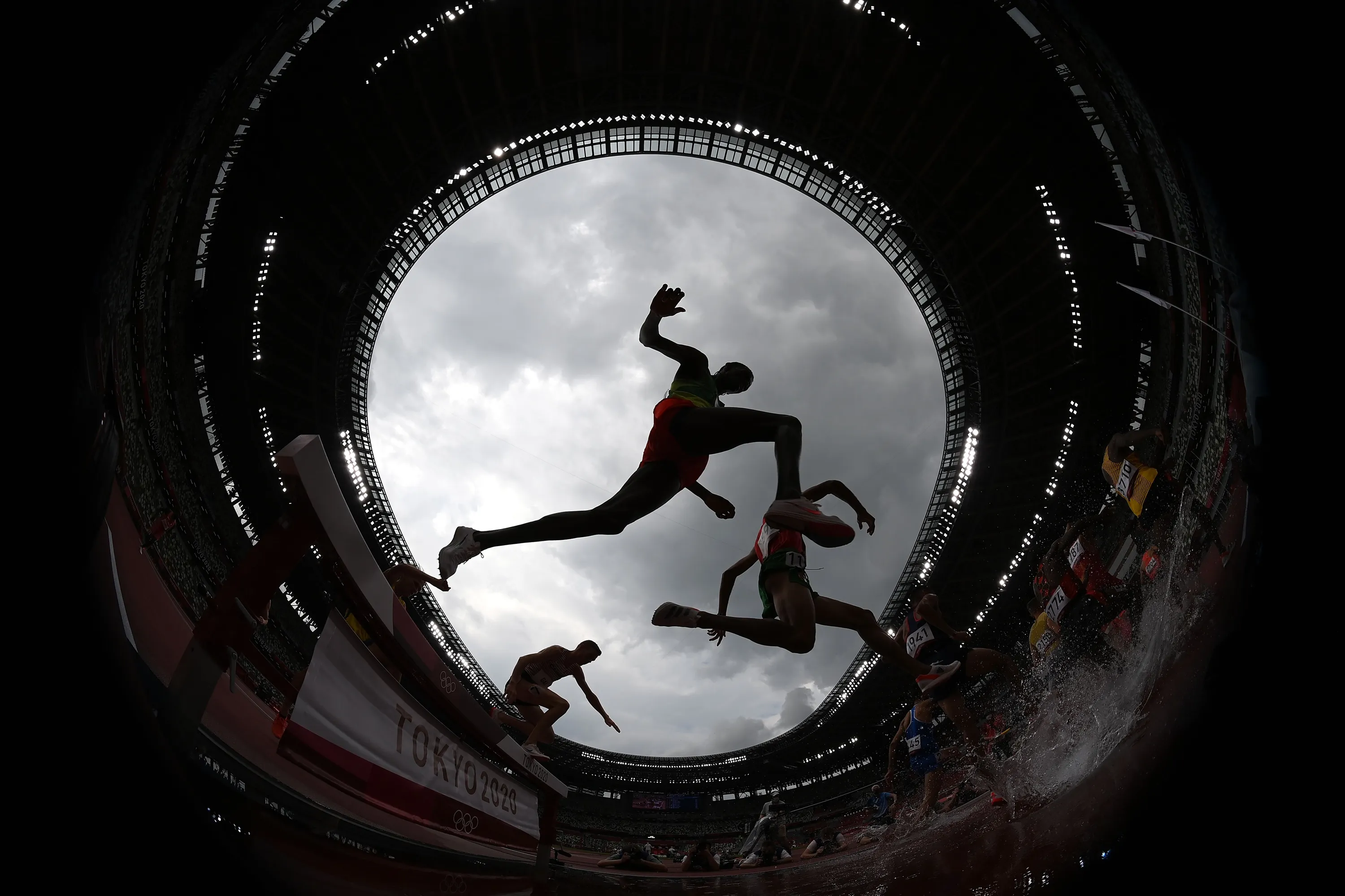 Athletes compete during round one of the Men's 3000m Steeplechase heats on day seven of the Tokyo 2020 Olympic Games at Olympic Stadium on July 30, 2021 in Tokyo, Japan. (Photo by Matthias Hangst/Getty Images)