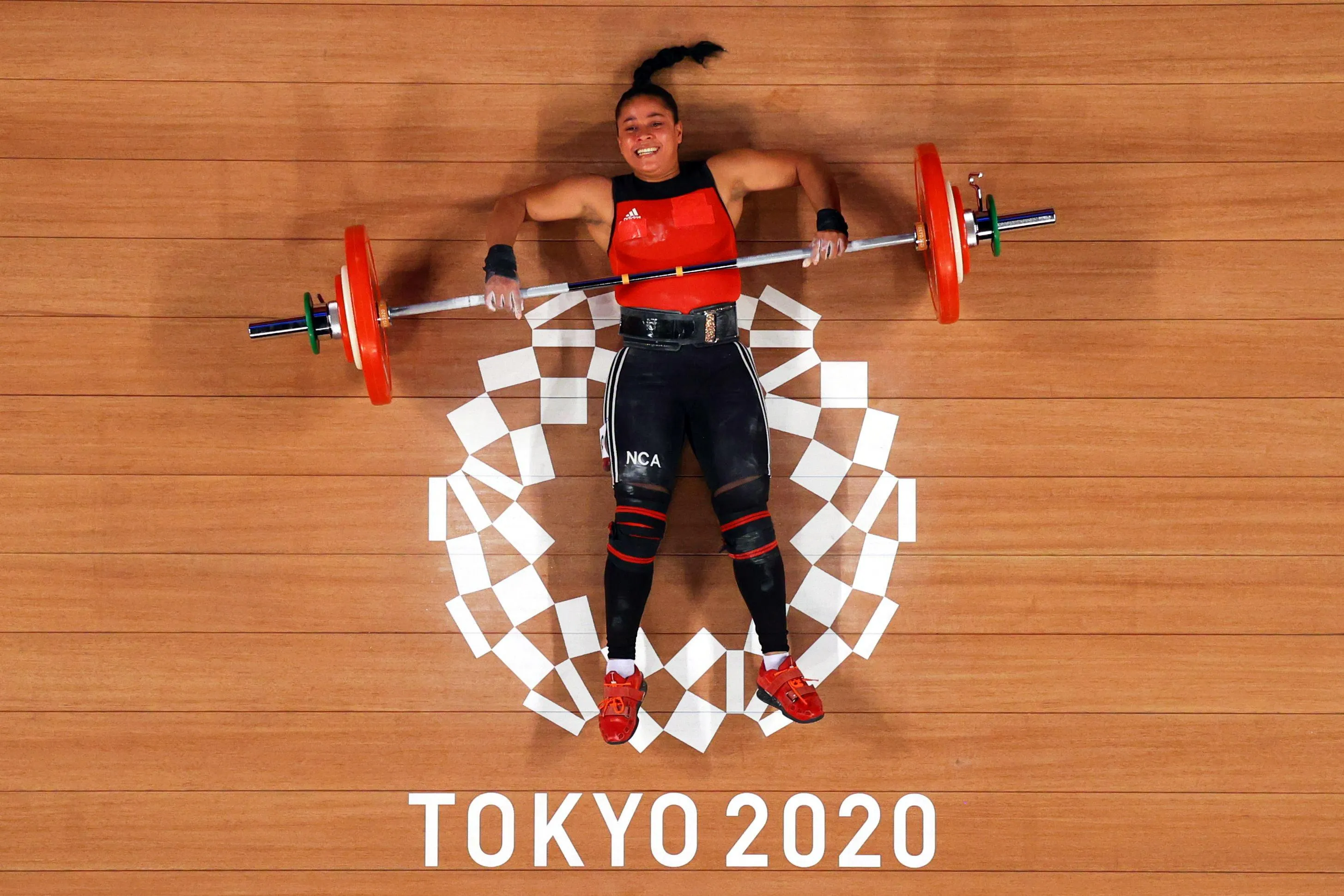 This picture taken with a robotic camera shows Nicaragua's Sema Nancy Ludrick Rivas competing in the women's 64kg weightlifting competition during the Tokyo 2020 Olympic Games at the Tokyo International Forum in Tokyo on July 27, 2021. (Photo by Chris Graythen/Reuters)