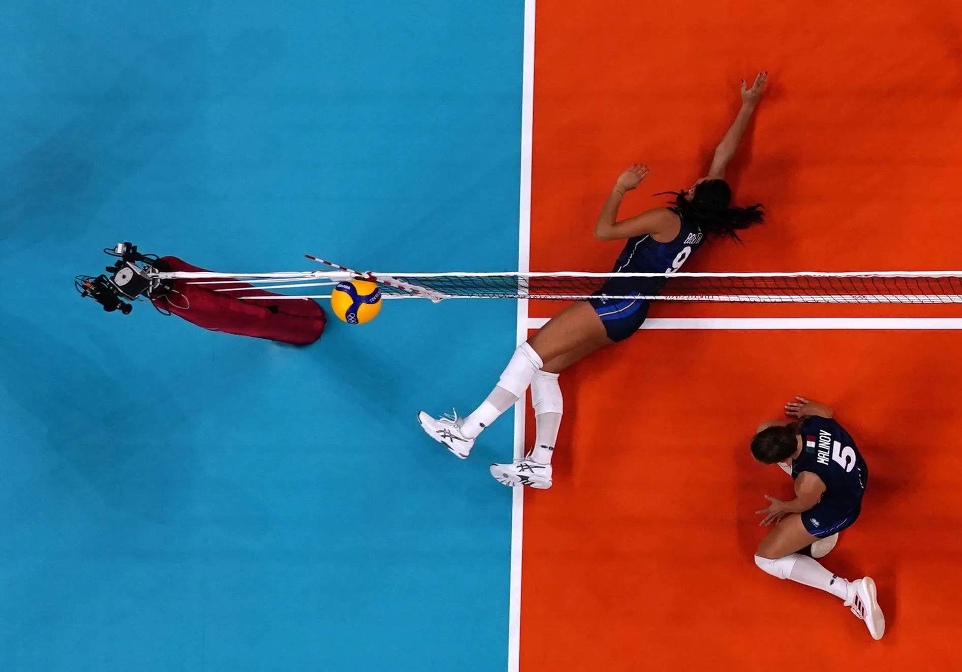 Caterina Chiara Bosetti #9 and Ofelia Malinov #5 of Team Italy in action against Team Argentina during the Women's Preliminary - Pool B volleyball on day six of the Tokyo 2020 Olympic Games at Ariake Arena on July 29, 2021 in Tokyo, Japan. (Photo by Carlos Garcia Rawlins/Reuters)