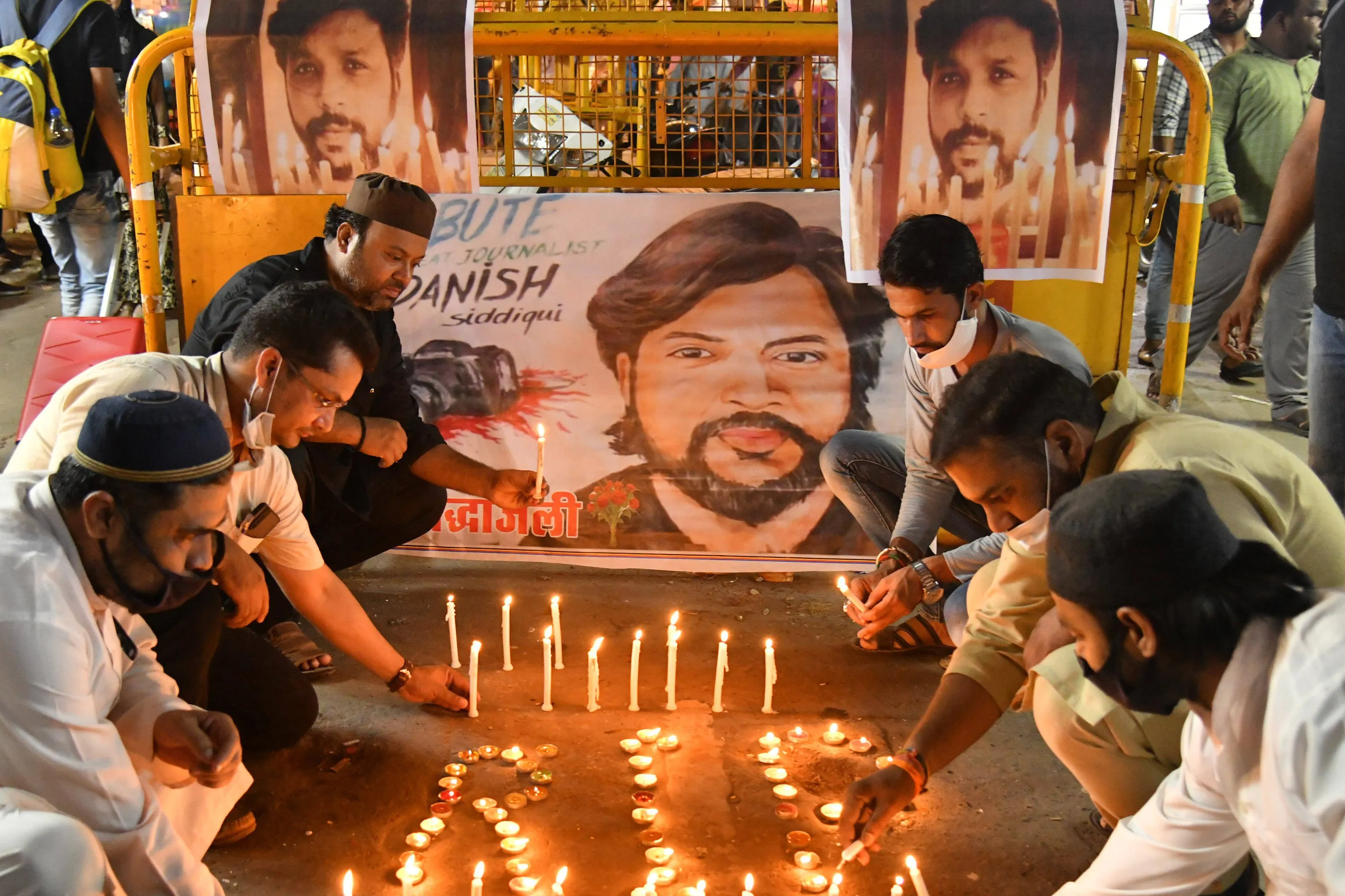 Candlelighting tribute to Pulitzer prize winner photojournalist Danish Siddiqui in front of Dargah Ajmer, Rajasthan in Ajmer, India on July 18, 2021. Danish Siddiqui, a Pulitzer Prize-winning Indian photojournalist for news agency Reuters, was killed Friday, 16 July, while covering clashes between Afghan security forces and the Taliban in the Spin Boldak district of Kandahar province, near Afghanistan's border with Pakistan. (Photo by Shaukat Ahmed/Imago)