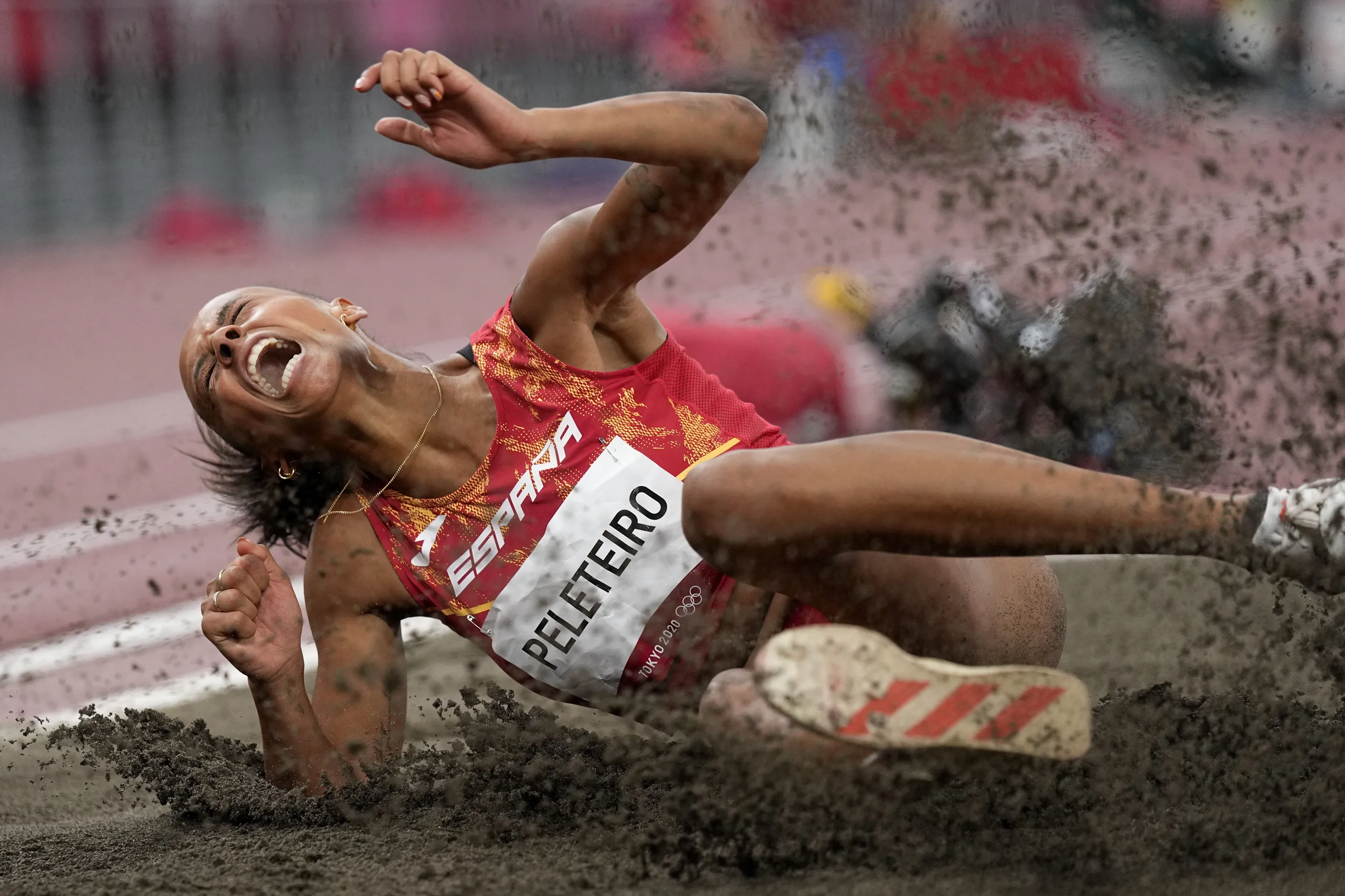 Ana Peleteiro, of Spain, competes in the final of the women's triple jump at the 2020 Summer Olympics, Sunday, August 1, 2021, in Tokyo. (Photo by David J. Phillip/AP Photo)