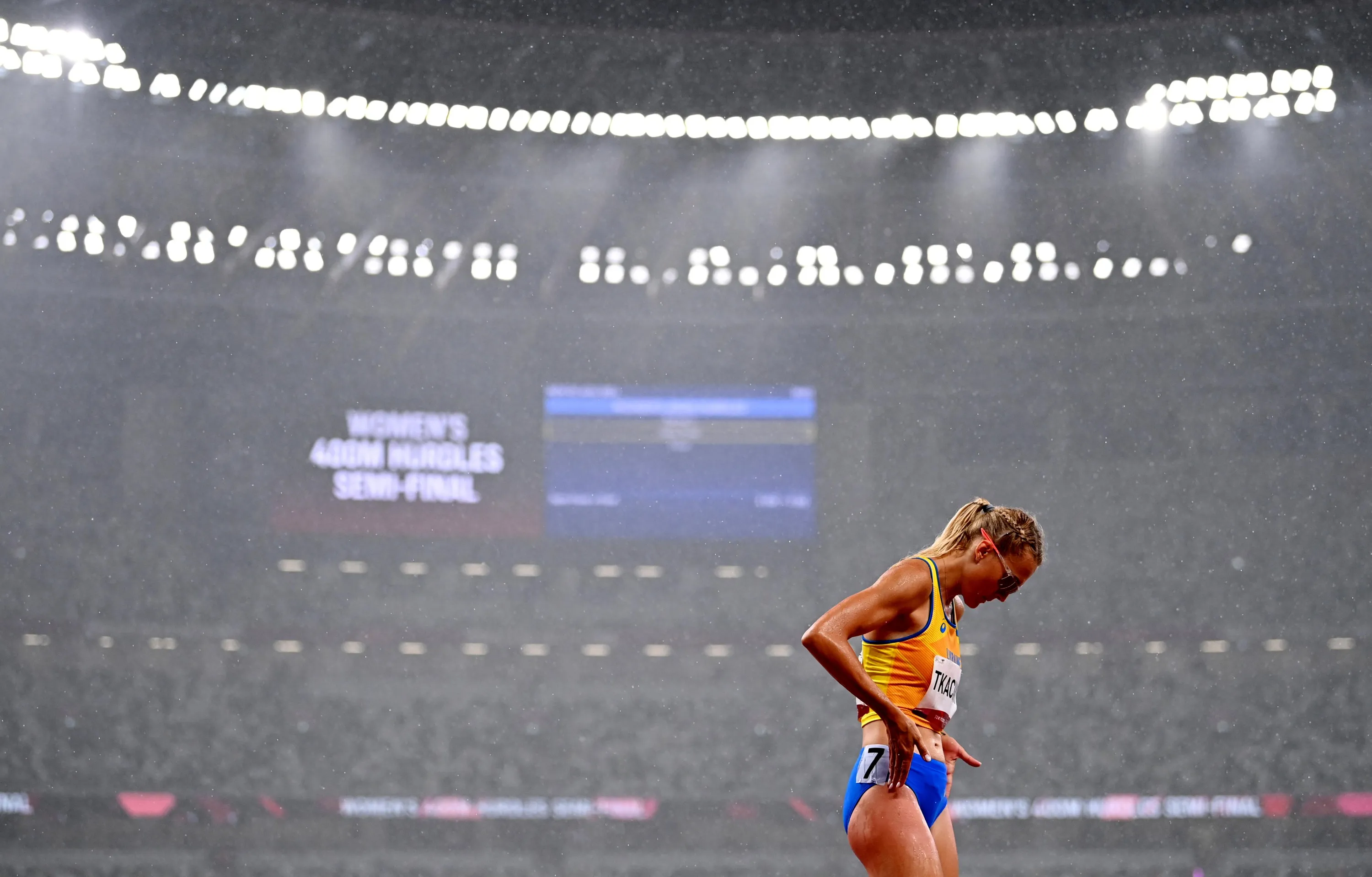 Ukraine's Viktoriya Tkachuk before competing in the women's 400m hurdles semi-finals during the Tokyo 2020 Olympic Games at the Olympic stadium in Tokyo on August 2, 2021. (Photo by Dylan Martinez/Reuters)