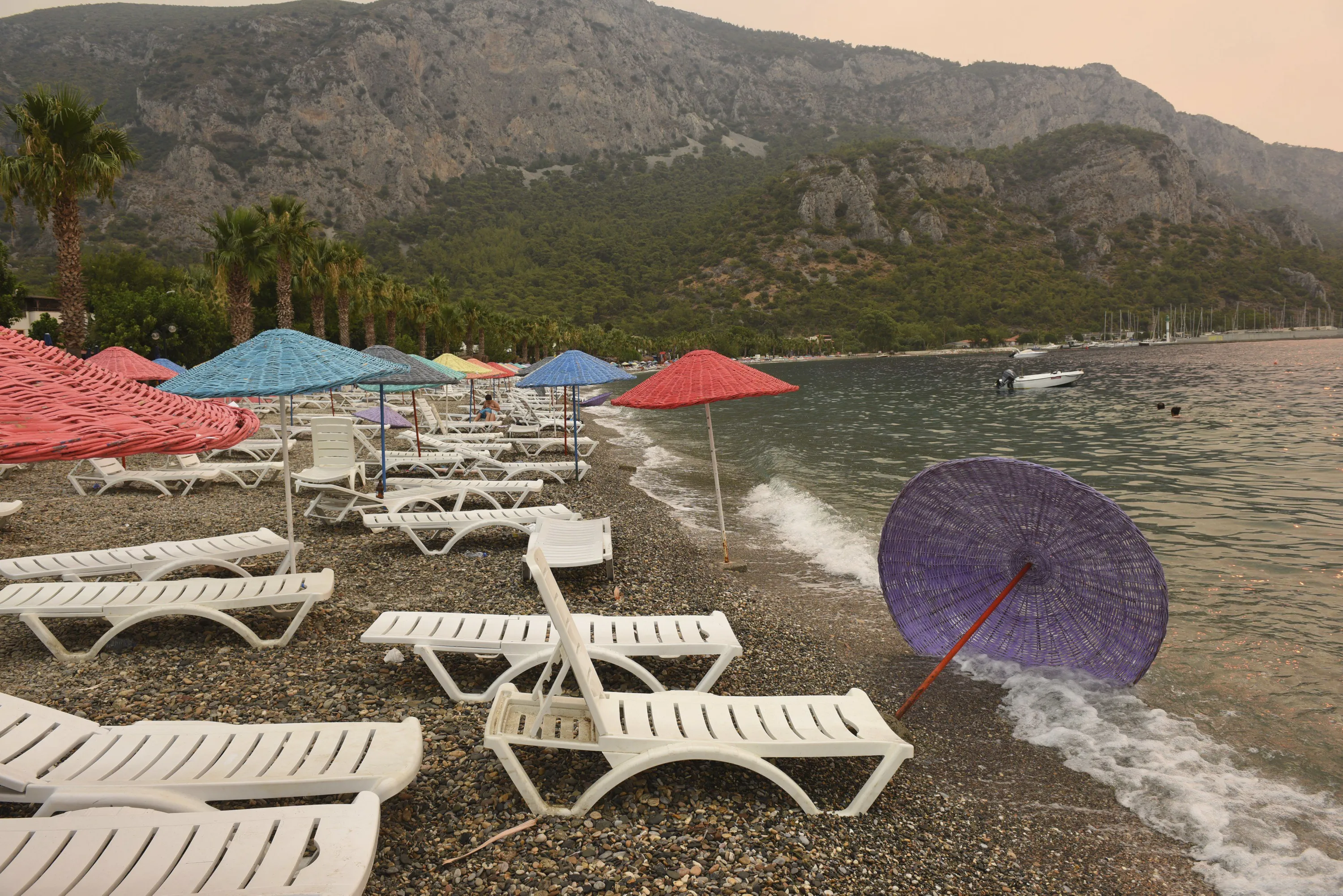 The Oren beach shortly after people were evacuated by boat after wildfires reached the nearby Kemerkoy Power Plant, a coal-fueled power plant, in Milas, Mugla in southwest Turkey, early Thursday, August 5, 2021. (Photo by AP Photo/Stringer)