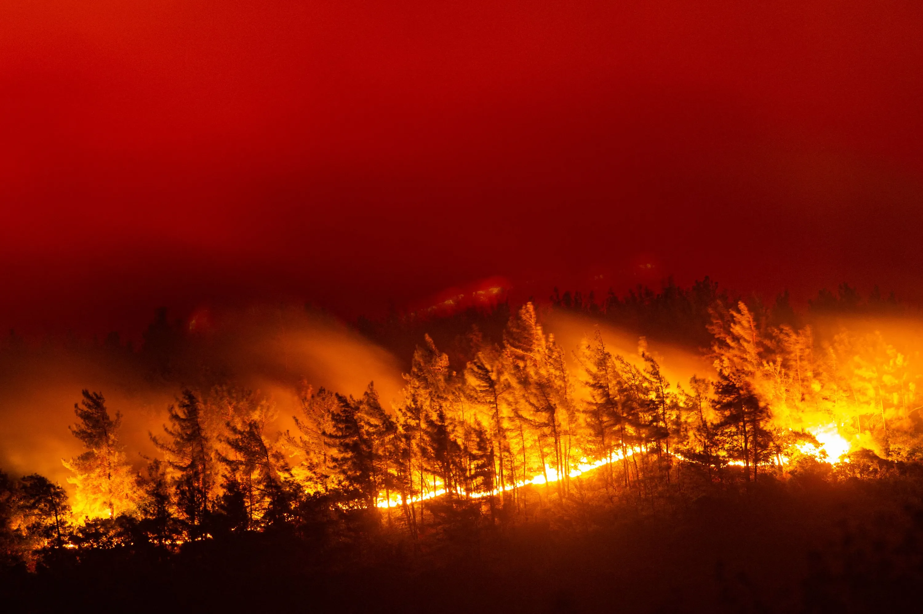 This picture shows flames rising from a forest burning in Akcayaka village in Milas area of the Mugla province, on August 6, 2021. In Turkey, at least eight people have been killed and dozens more hospitalised as the country struggles against its deadliest wildfires in decades. (Photo by Yasin Akgul/AFP Photo)