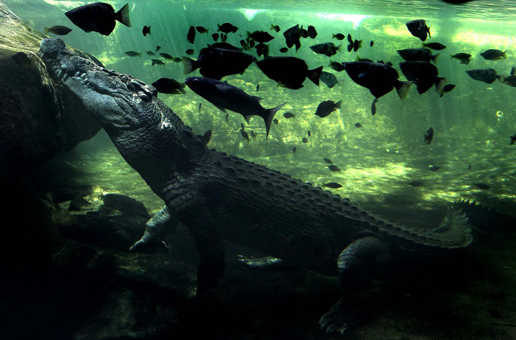 A 700kg crocodile called Rex calmly waits beneath the water to be fed after coming out of a three-month hibernation at the WILD LIFE zoo in Sydney, Australia, on October 3, 2012. (Photo by Rob Griffith/Associated Press)