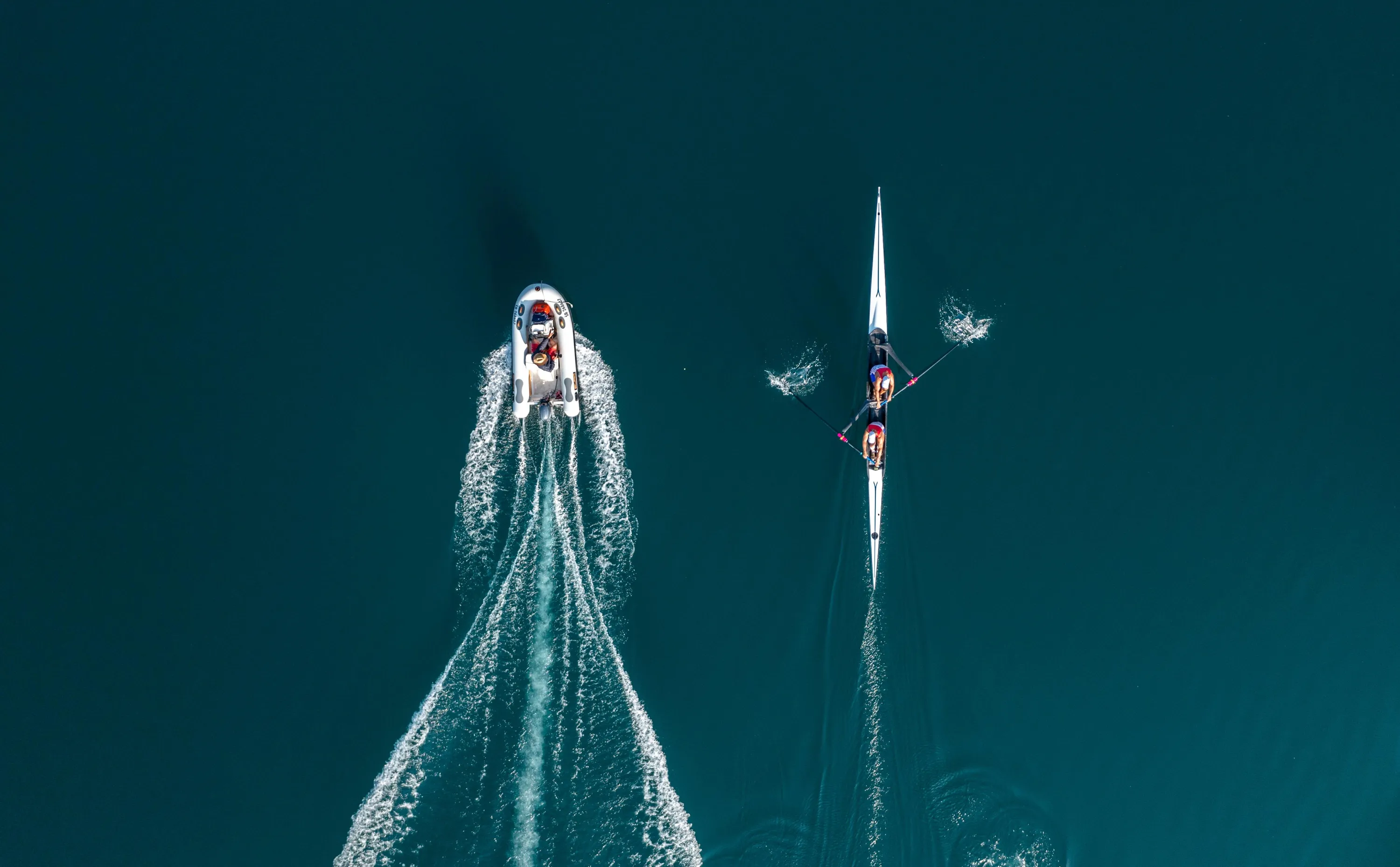 Croatia rowers Martin Sinkovic and Valent Sinkovic are seen during rowing practice with their coach at Peruca Lake for the Tokyo 2020 Olympics near Sinj, Croatia, June 19, 2021. Picture taken with a drone. (Photo by Antonio Bronic/Reuters)